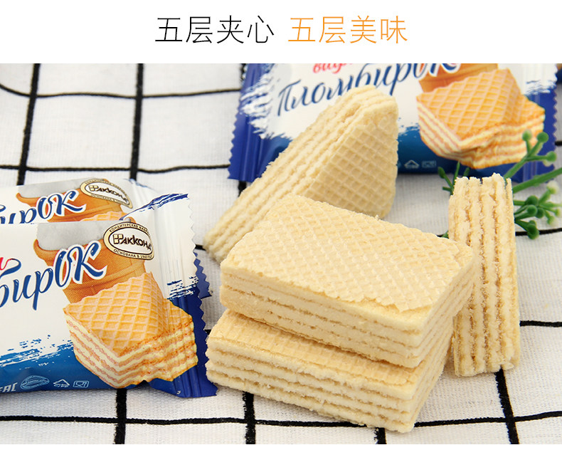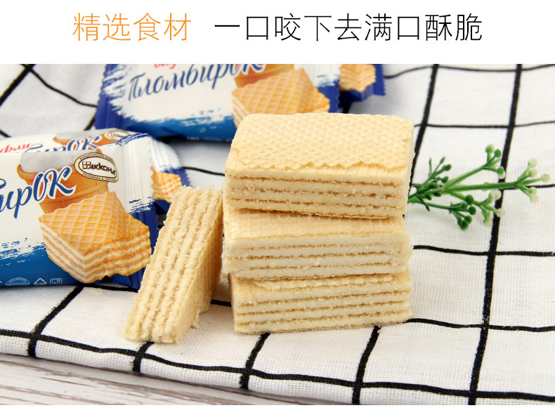 俄罗斯原装进口500g,酥脆烘焙的威化,香滑可口的醇香冰淇淋,抵挡不住的五层诱惑,冰淇淋与芝士奶酪的鲜香美味,久吃不腻【阿孔特】俄罗斯