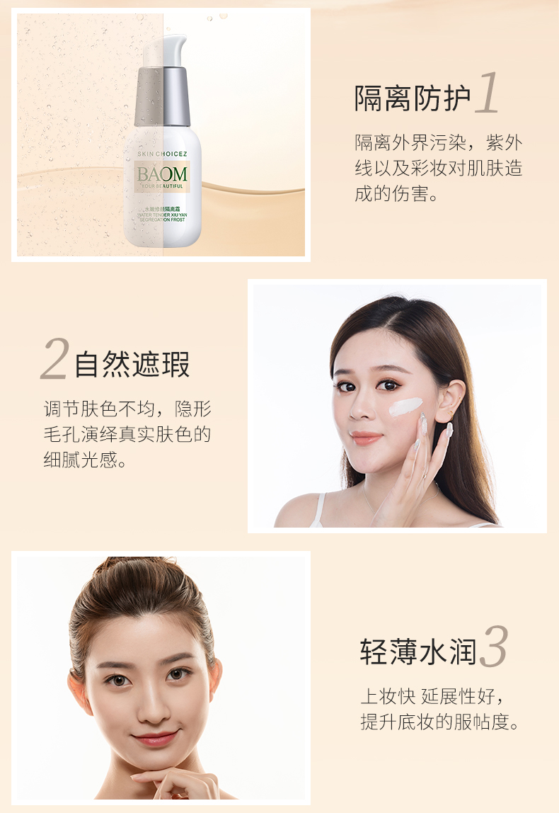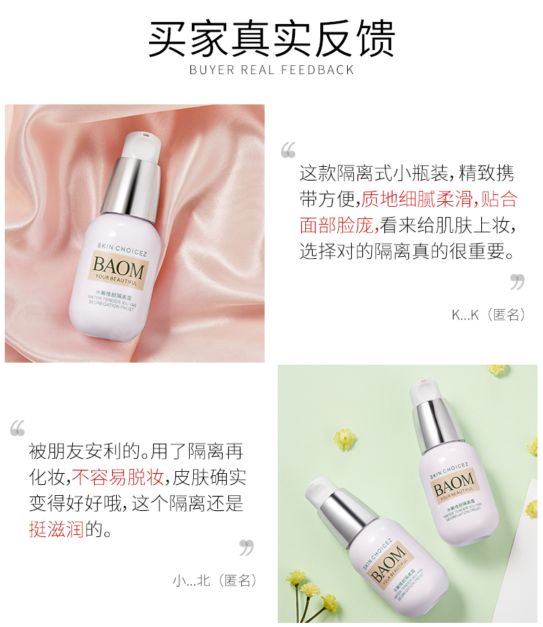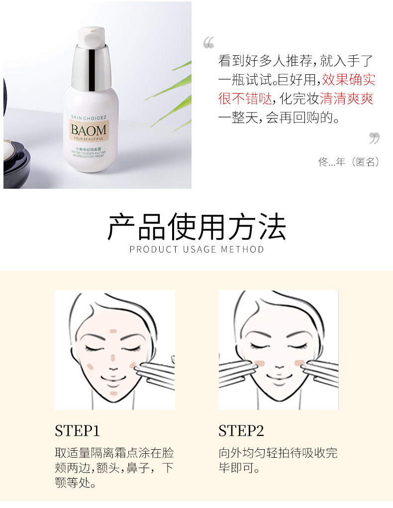 【第二件10元,发同款!!】BAOM葆玛之谜旗舰店,李佳琪强烈推荐!水嫩修颜妆前乳二合一,隔离霜,屈臣氏有售139元一瓶!!自然遮瑕,上妆清爽保湿!百搭不挑肤,打造水润裸妆体验~
