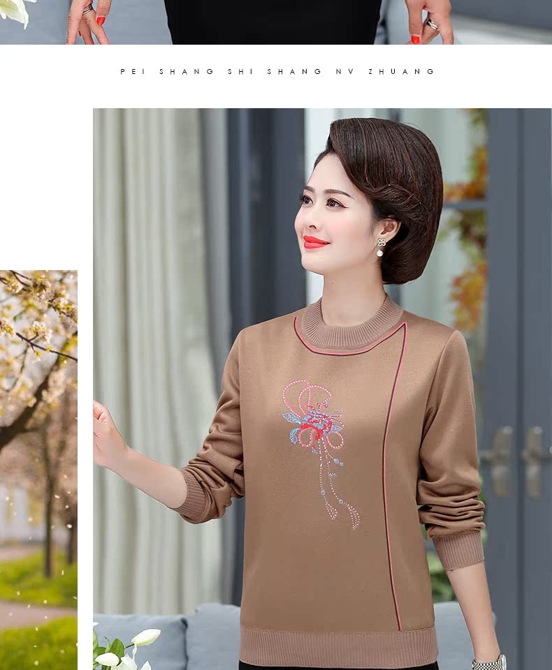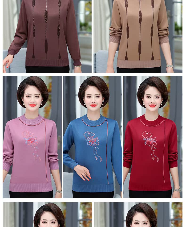 新年好!!【培裳旗舰店】妈妈装加绒打底衫来了!高品质面料,加绒保暖,显瘦百搭,胖妈妈加大设计,适合各种身型,多种花型可选,送妈妈优选!给妈妈温暖的新年礼物!!【给亲爱的妈妈添件毛衣吧】