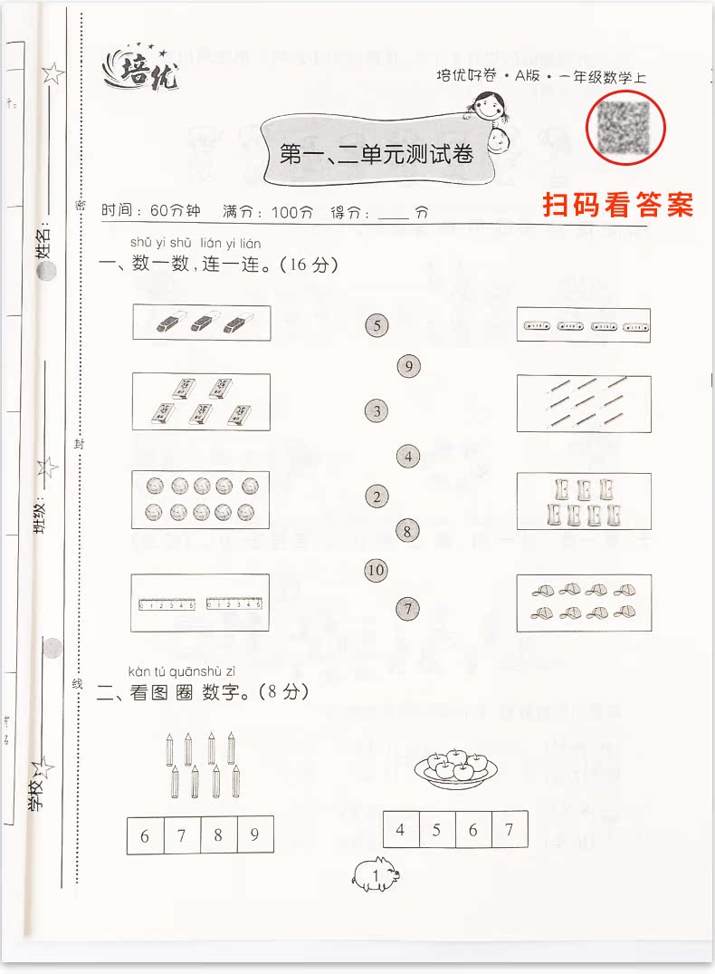 2019新小学一年级上册试卷单元测试卷,语文数学书人教版练习册,全能夺冠100分单元月考期中期末测试卷,一年级上册同步训练,加送暑假作业,数量有限!!!