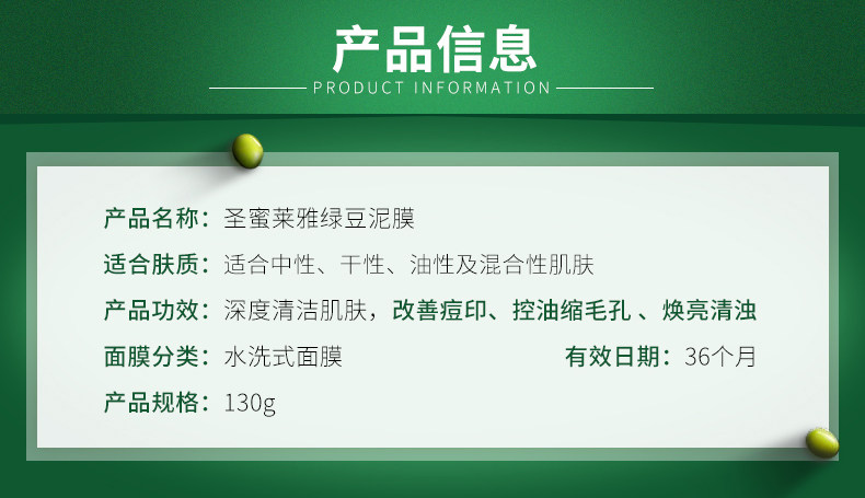 【圣蜜莱雅】绿豆泥面膜130g