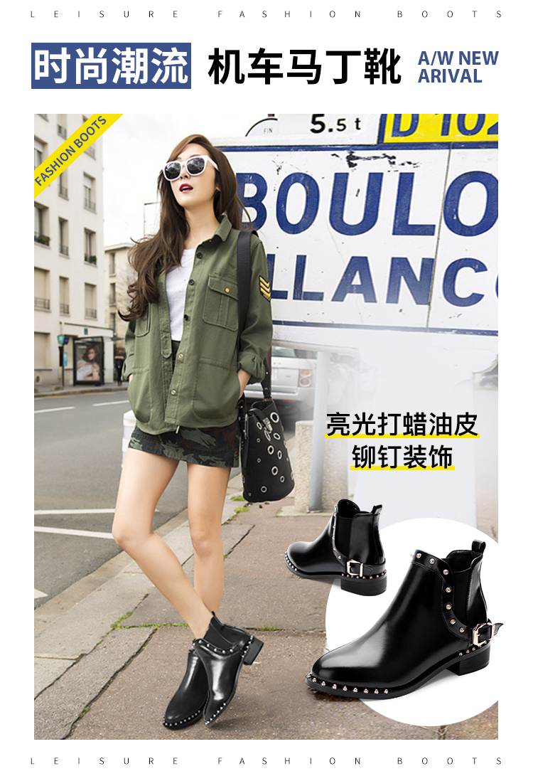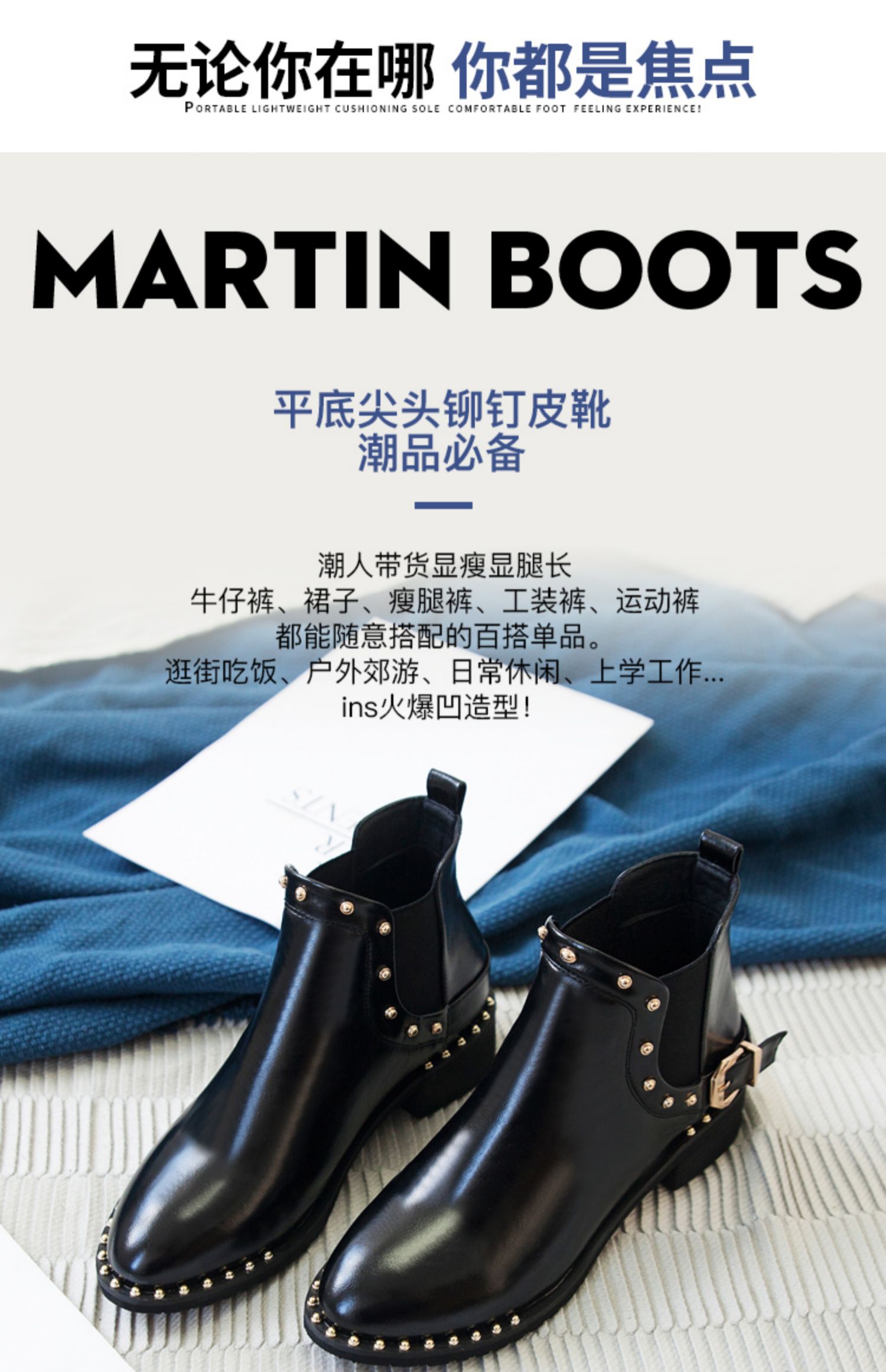 毅雅铆钉马丁靴女2019新款冬季加绒靴子女百搭英伦风切尔西短靴女,年轻人的女鞋品牌,正品保证,赠运费险。