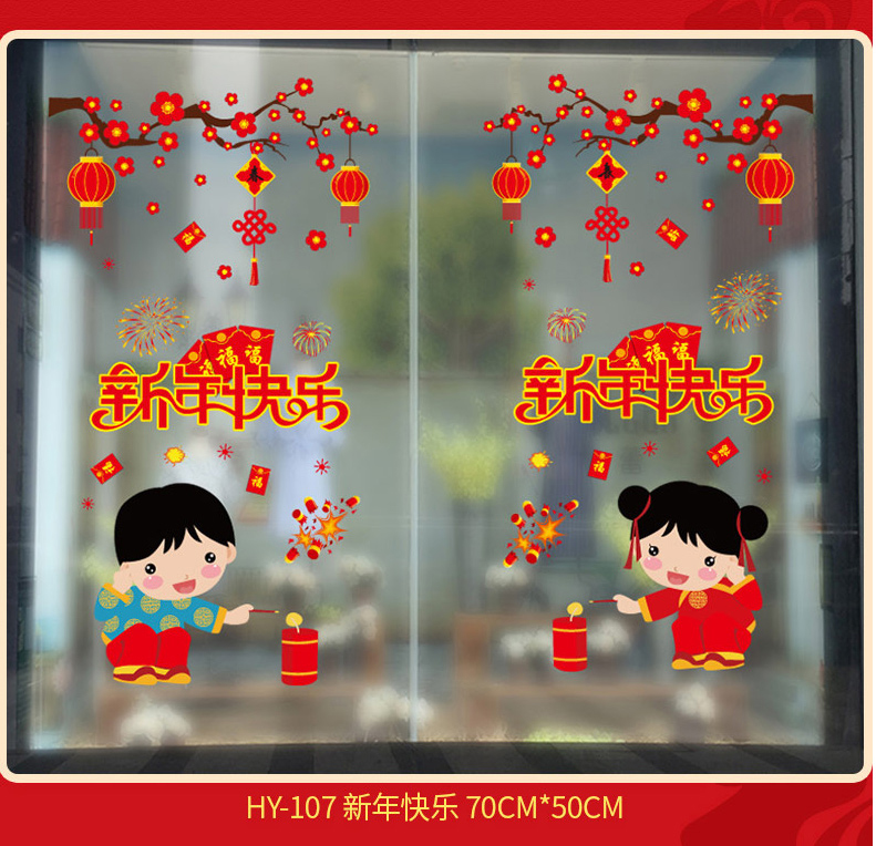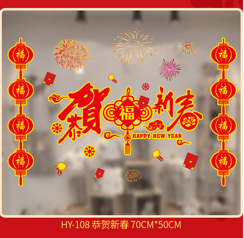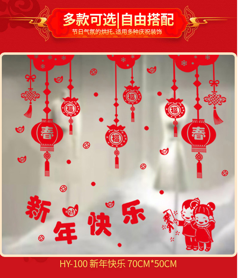 静电贴墙纸商场店铺,橱窗贴纸玻璃酒吧,派对贴纸,商场装扮会场布置,节日气氛元旦教室
