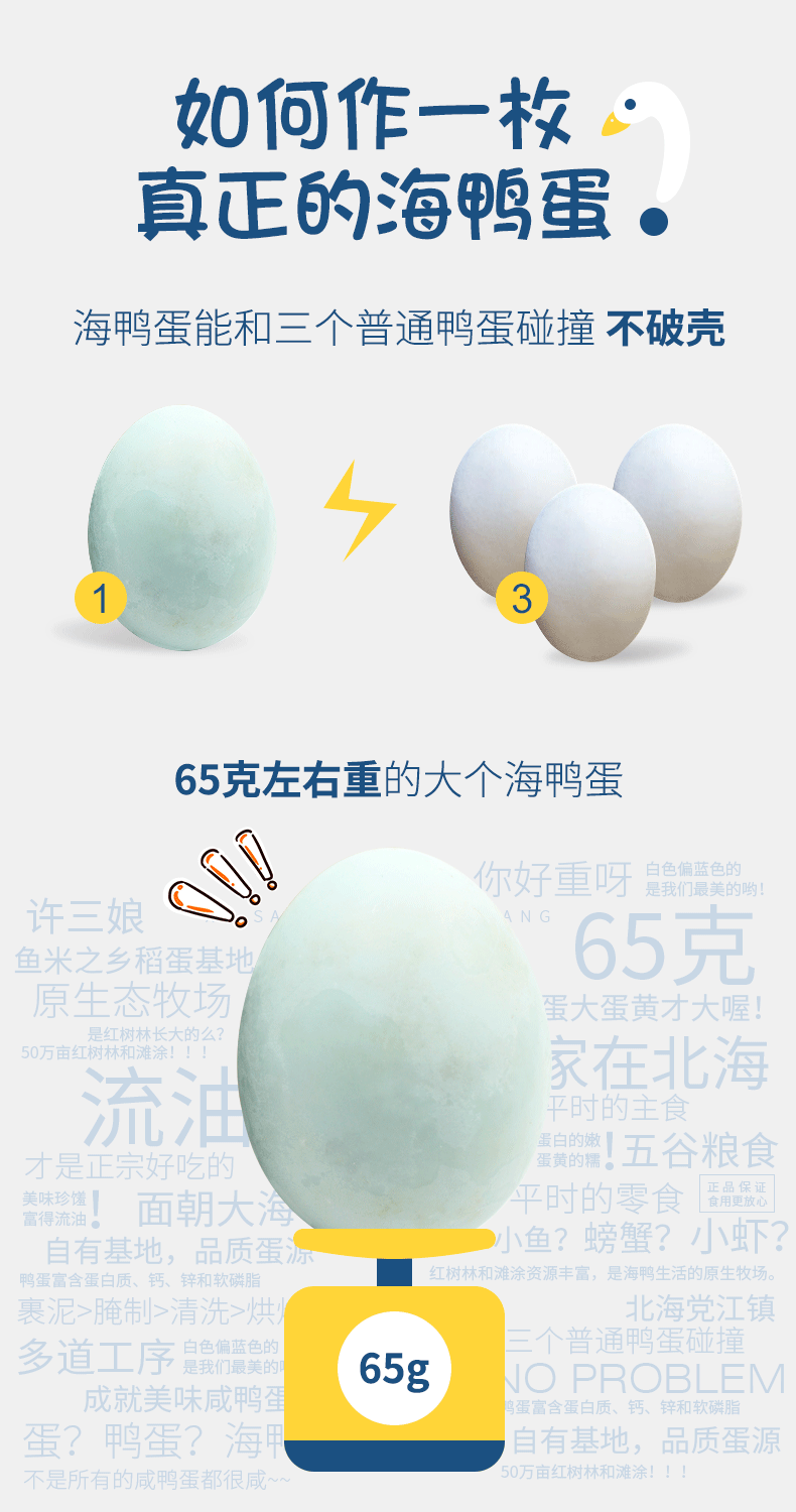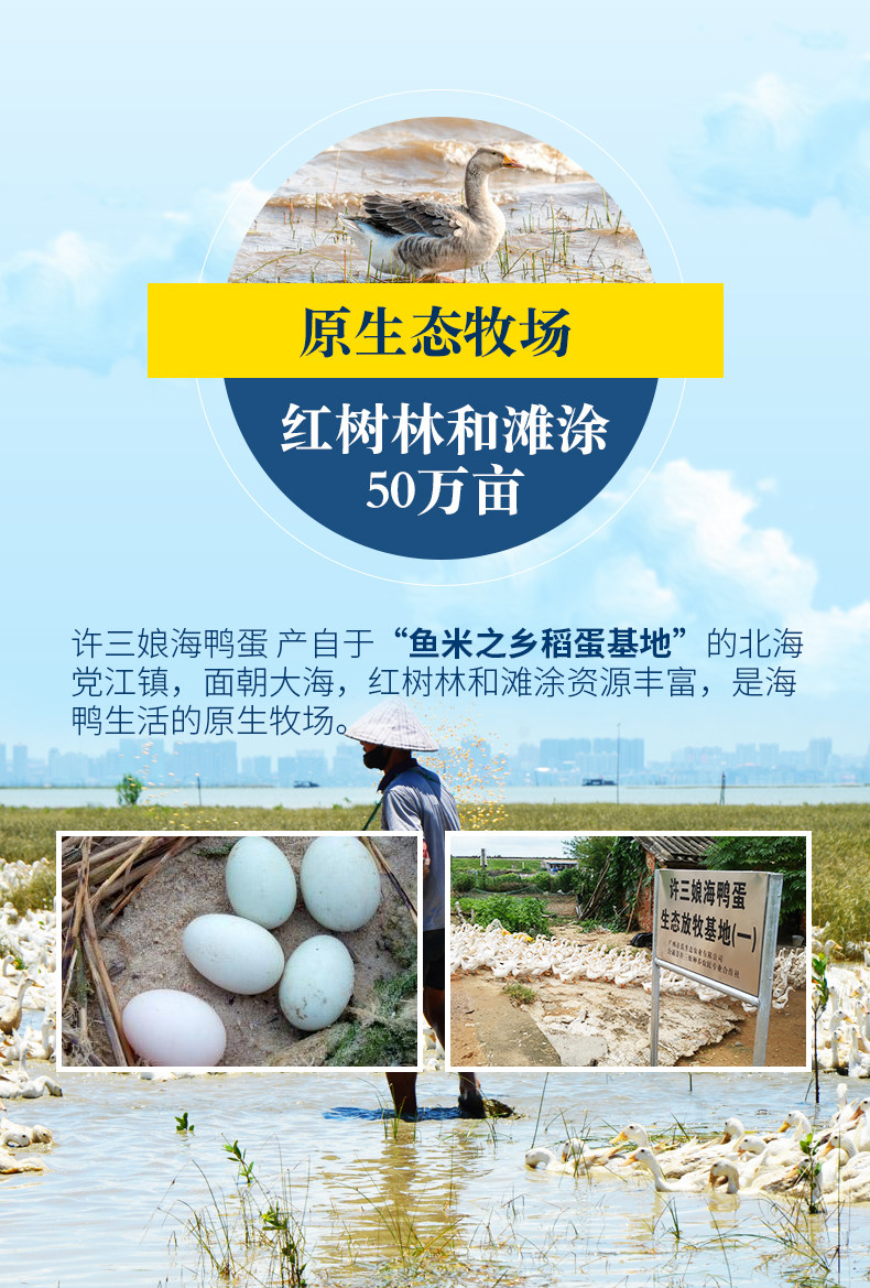 央视CCTV同款海鸭蛋,咸香流油,原生态牧场,产自于“鱼米之乡稻蛋基地”的北海党江镇,面朝大海,红树林和滩涂资源丰富,是海鸭生活的原生态牧场,自然馈赠,生态养殖,多道工序成就美味的咸鸭蛋。