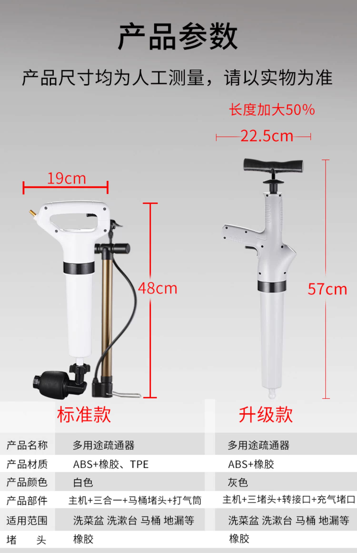 【一炮通】有了它,马桶~洗手池堵了也不怕,可瞬间强力气压式疏通管道,一按就通,5秒搞定!老人小孩皆可操作,轻松简单!通不了,包退!!【送打气筒、马桶堵头】【赠运费险】