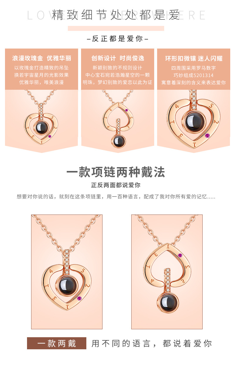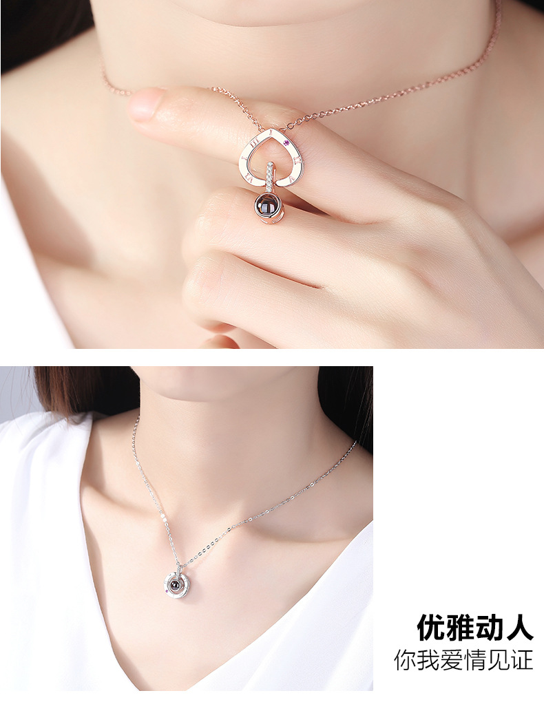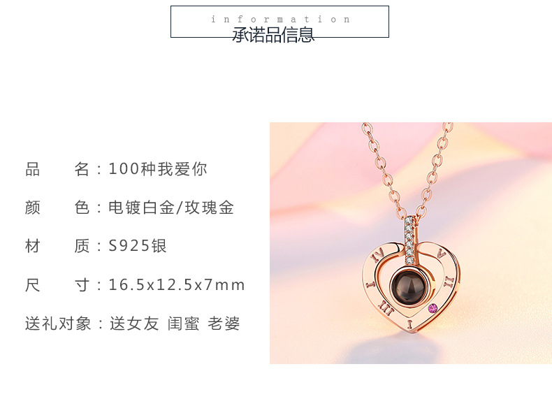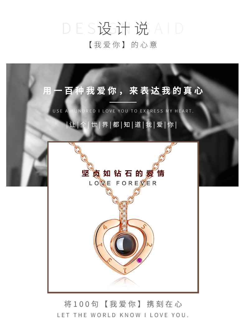 草莓晶项链女纯银100种我爱你,抖音同款语言锁骨链情人节礼物女友,一百种我爱你项链,投影款,你想要的心动,我都有,专注细节,美丽心动。