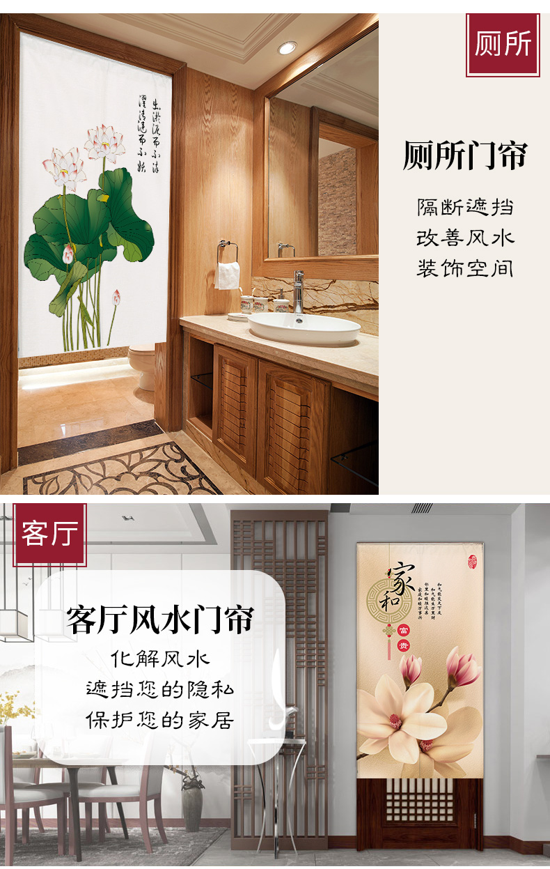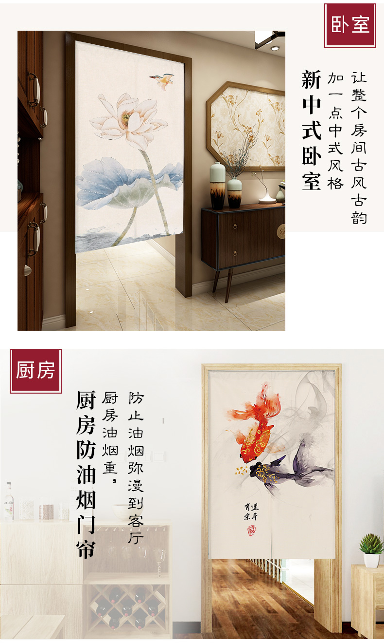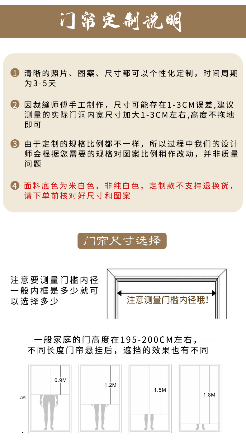 【支持来图定制】新中式门帘,恬精雅致,精选厚磅仿麻面料,手感厚实不粗糙,双层锁边!中间升级磁铁工艺,遮蔽性更佳,数码印花,水洗不褪色,健康无甲醛,孕妇儿童皆宜。【送免打孔伸缩杆】【赠运费险】
