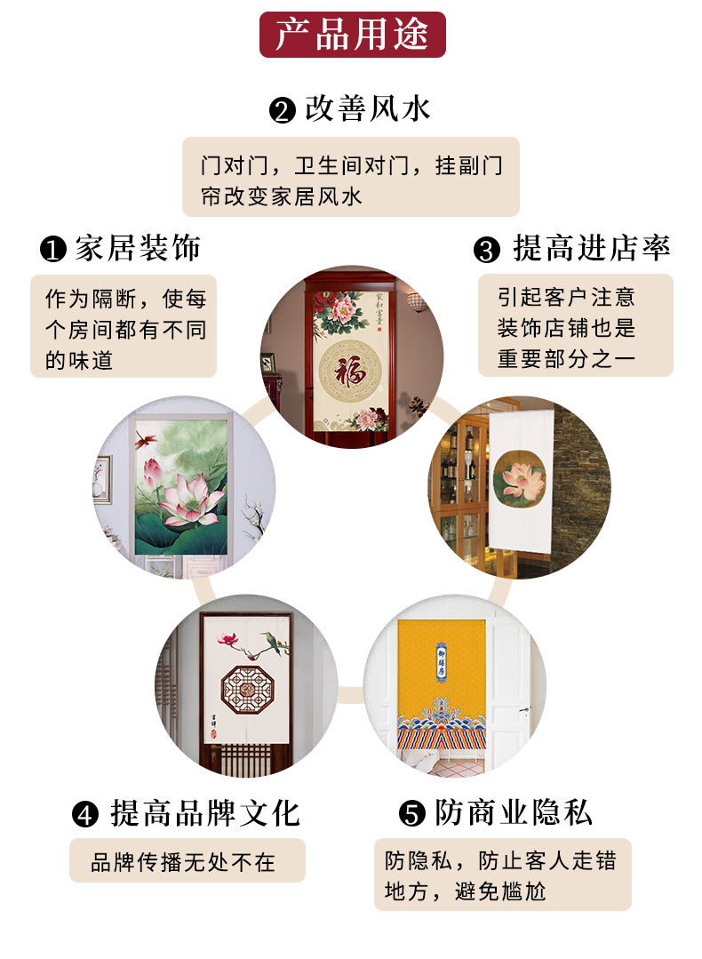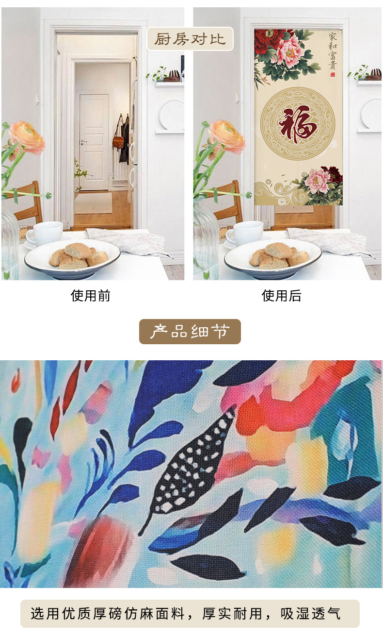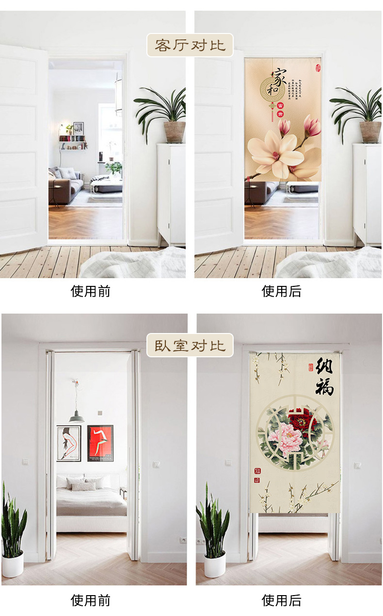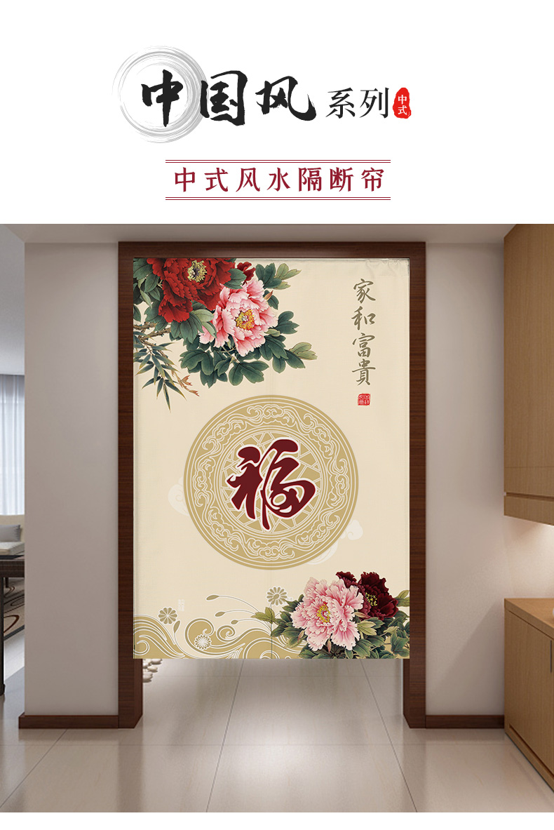 【支持来图定制】新中式门帘,恬精雅致,精选厚磅仿麻面料,手感厚实不粗糙,双层锁边!中间升级磁铁工艺,遮蔽性更佳,数码印花,水洗不褪色,健康无甲醛,孕妇儿童皆宜。【送免打孔伸缩杆】【赠运费险】