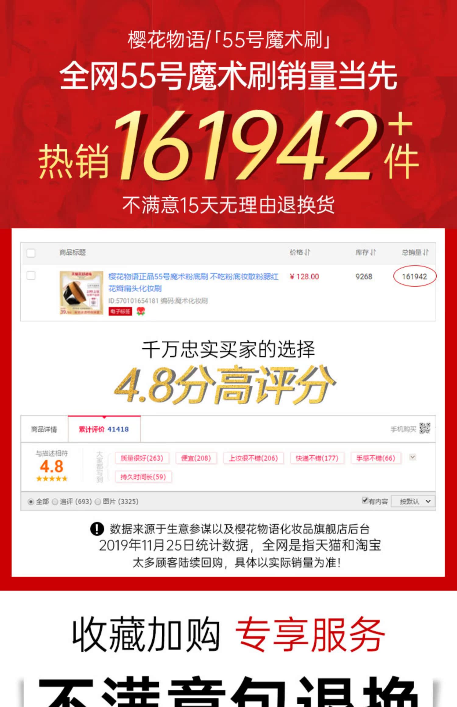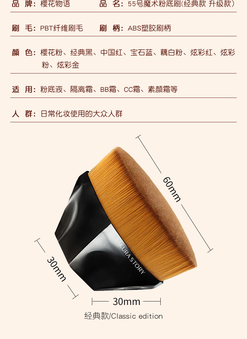 雅诗兰黛原创设计师设计,正品樱花物语55号魔术刷,10秒快速上妆。多角便携不易吃粉,触感柔软,均匀服帖,面面俱到。