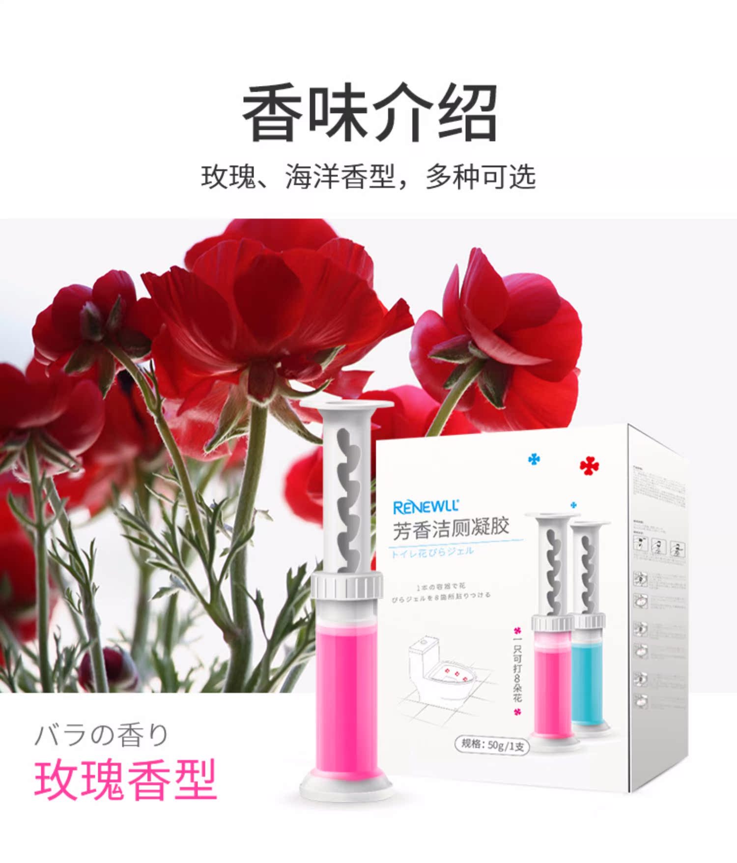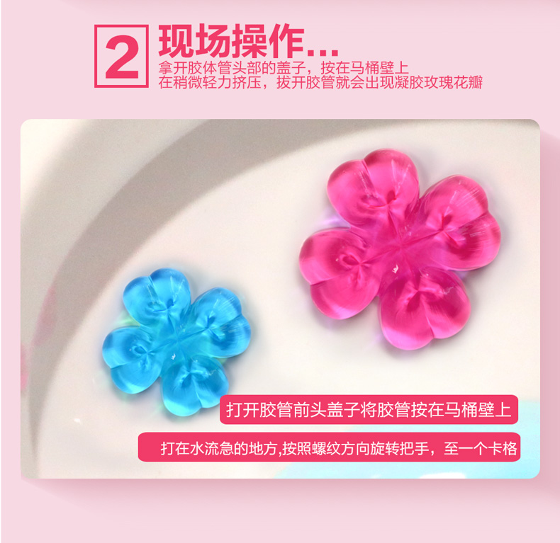 抖音超火的马桶小花清洁凝胶,升级不升价3D花型更立体,1支可打9朵花,7天换一朵可用2个月!每个清香冻可用160次以上,可冲水1000次以上!限位推杆,不缺不滥,使用简单