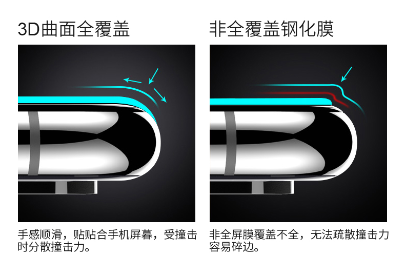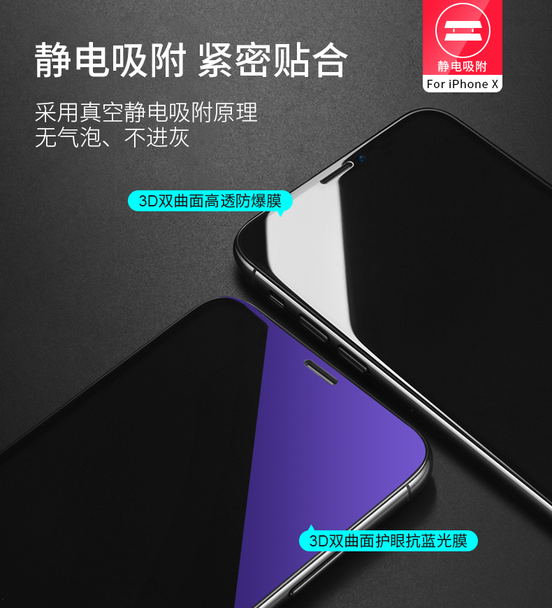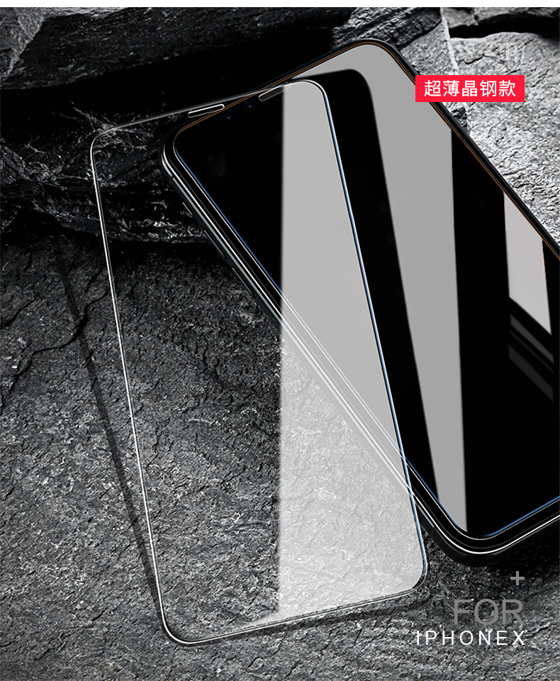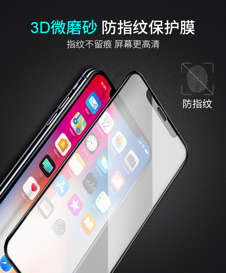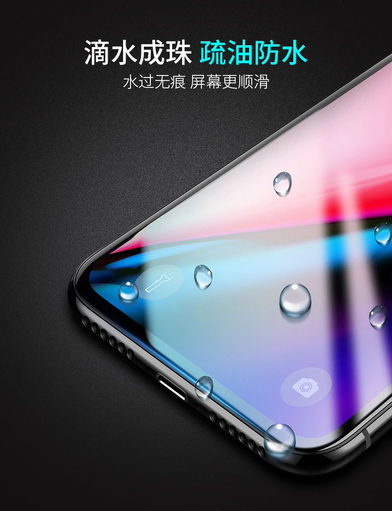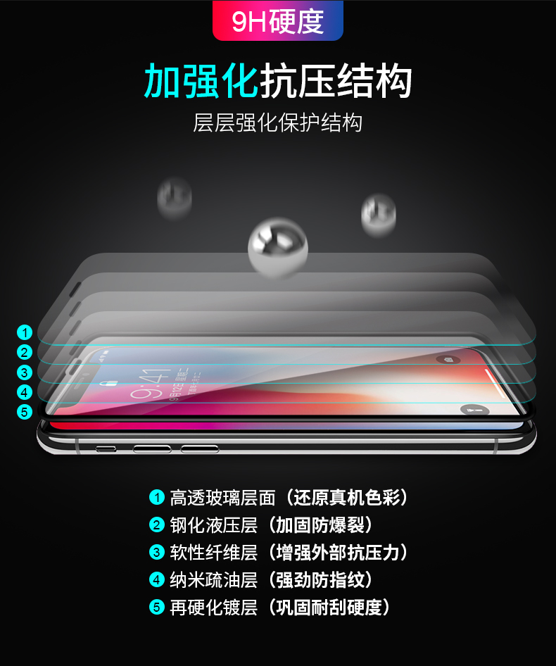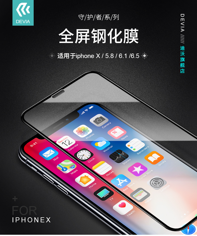 迪沃苹果X钢化膜,高透玻璃沉层面,还原真机色彩,钢化液压层,加固防爆裂,手感好到忘了贴膜