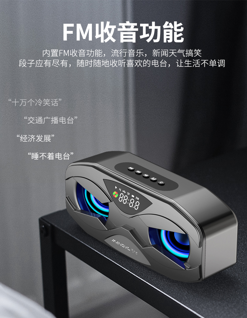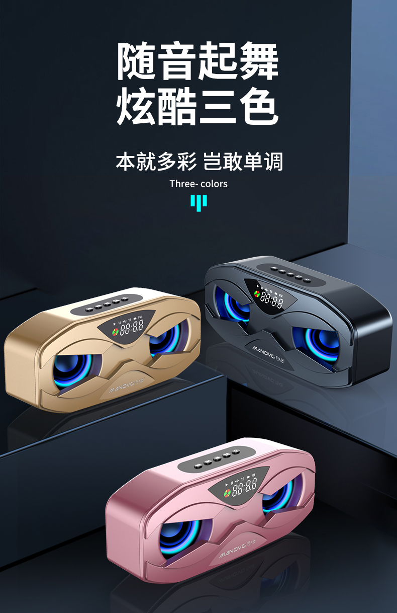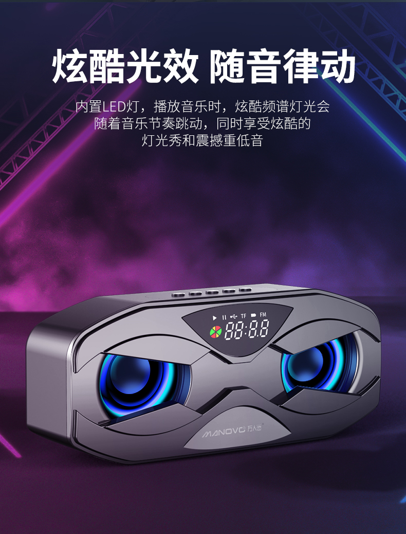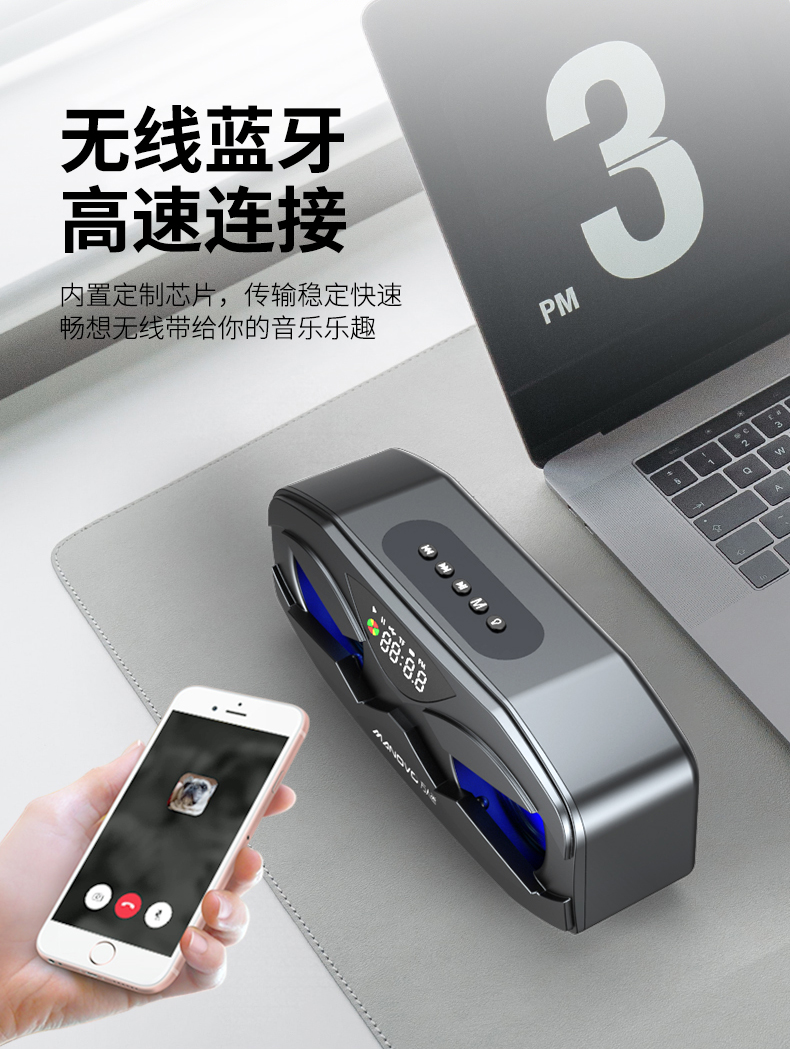 【可插内存卡,一机多用!蓝牙音响,收音机,闹钟,收款播报,还能连接手机语音通话,】蓝牙5.0,七彩灯,3喇叭6D环绕音效,,2倍音量,劲爆低音超震撼!