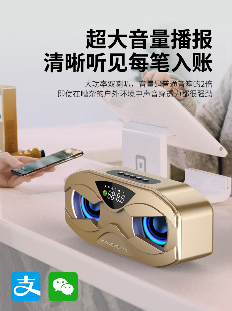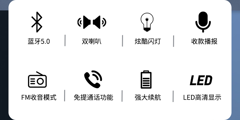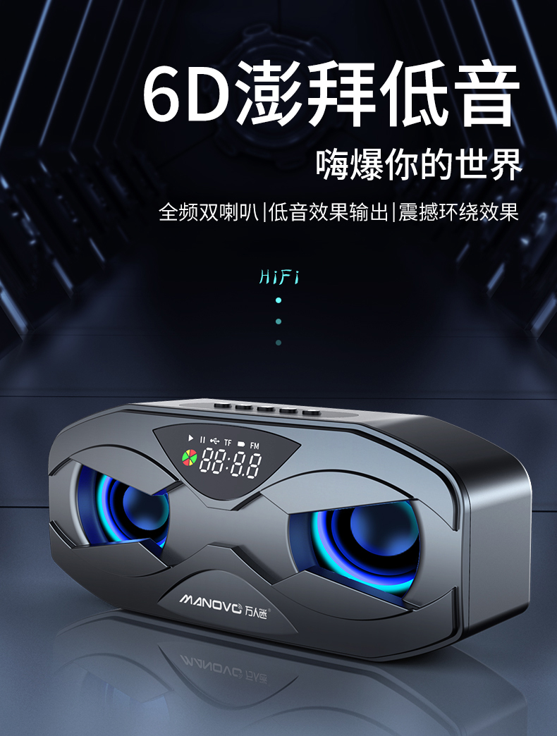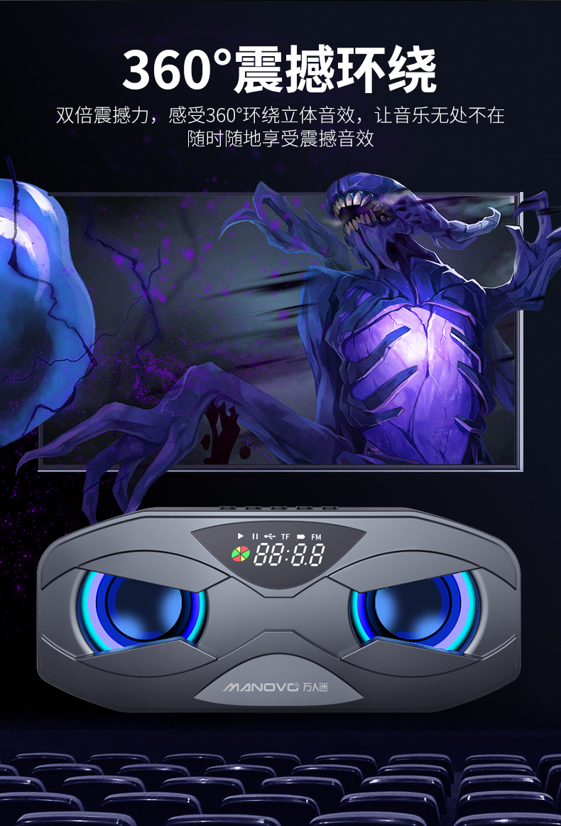 【可插内存卡,一机多用!蓝牙音响,收音机,闹钟,收款播报,还能连接手机语音通话,】蓝牙5.0,七彩灯,3喇叭6D环绕音效,,2倍音量,劲爆低音超震撼!