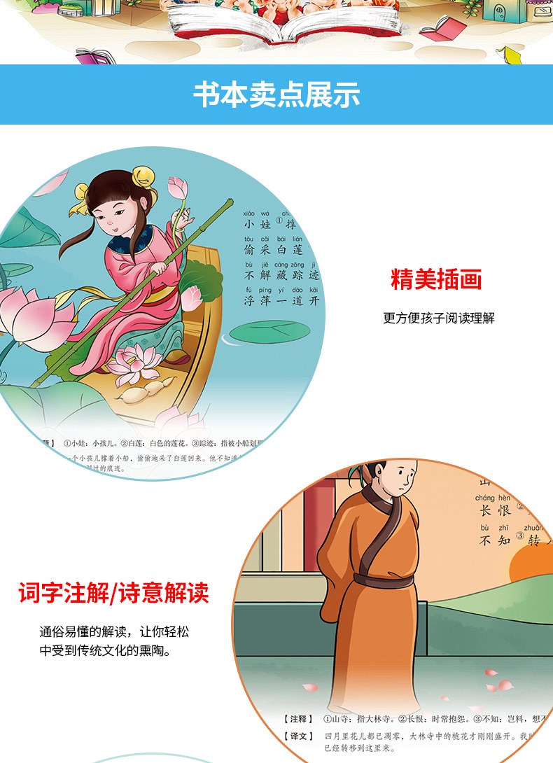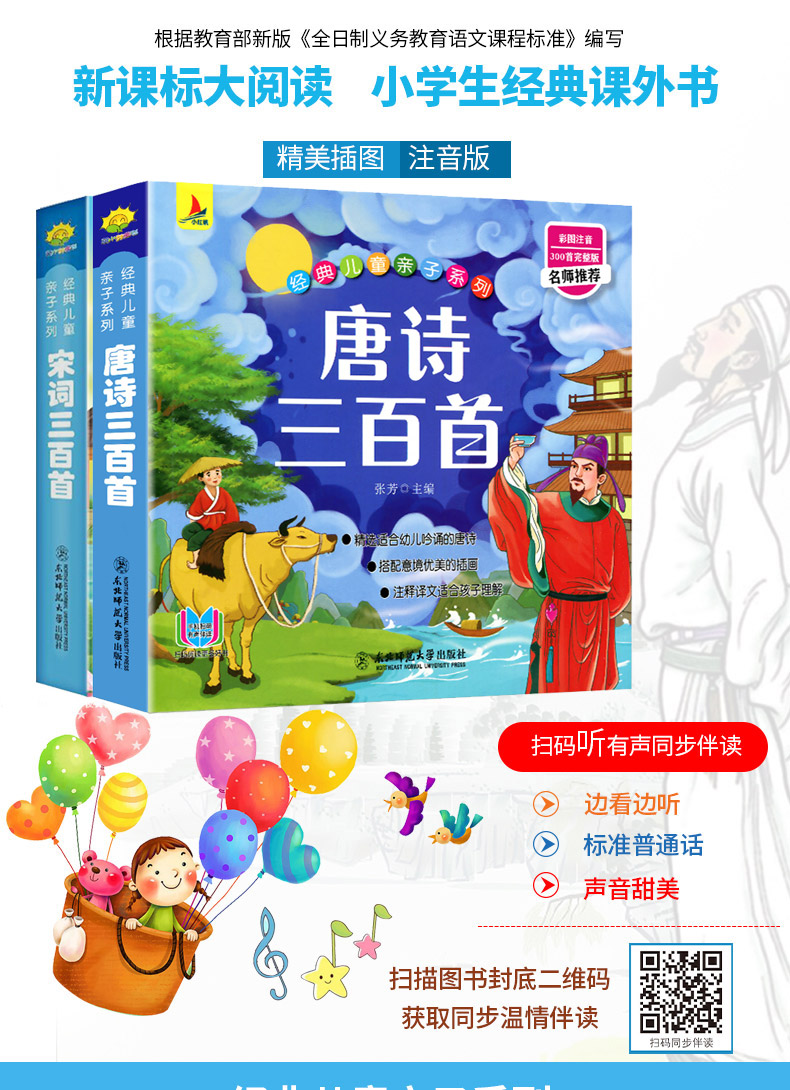 唐诗宋词(2册)精装版国学经典童书籍全套,彩图注音版绘本图画书3-6-12岁儿童文学课外阅读中国古诗词读物,精装彩图注音版,培养孩子高尚的精神品格。