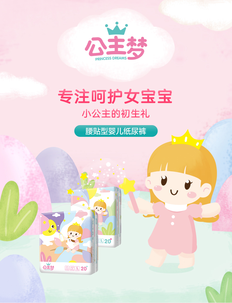 【买一送一】公主梦纸尿裤,40片,婴儿超薄透气干爽宝宝专用尿不湿,棉柔冬季宝宝专属,尿点芯层,吸收更准更快更多