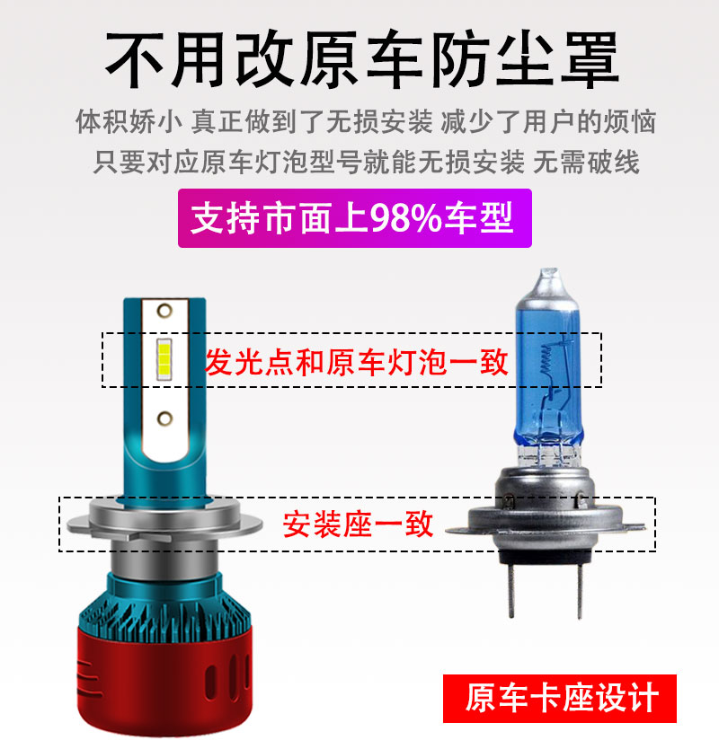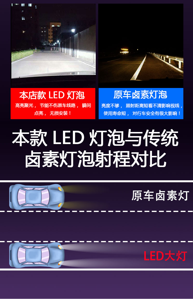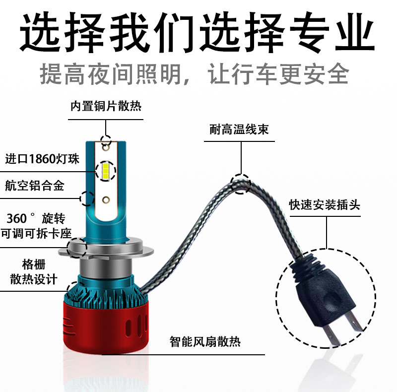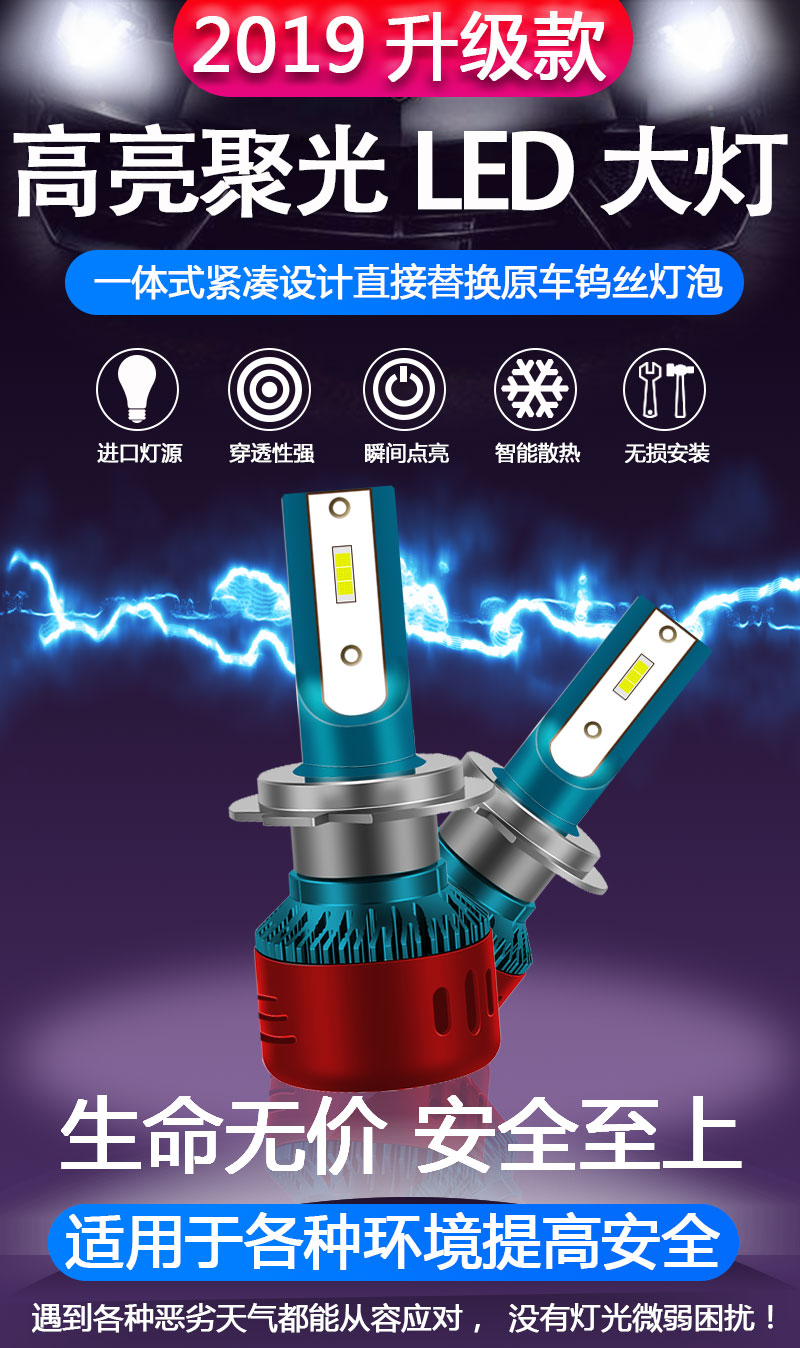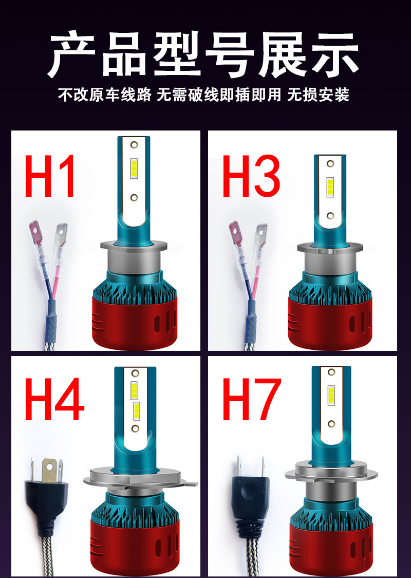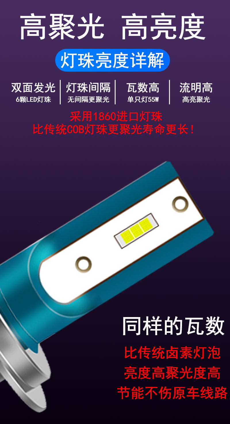 汽车led大灯改装超亮聚光h1h7h4h1190129005远近光一体,为了亮度而生,智能高科技制作德国进口CREE大功率灯珠,光型饱满,照射范围内无暗区,高聚光不散光~赠运费险