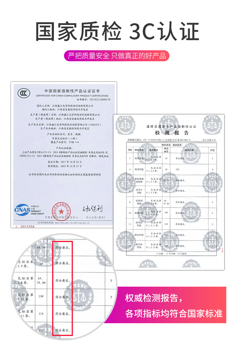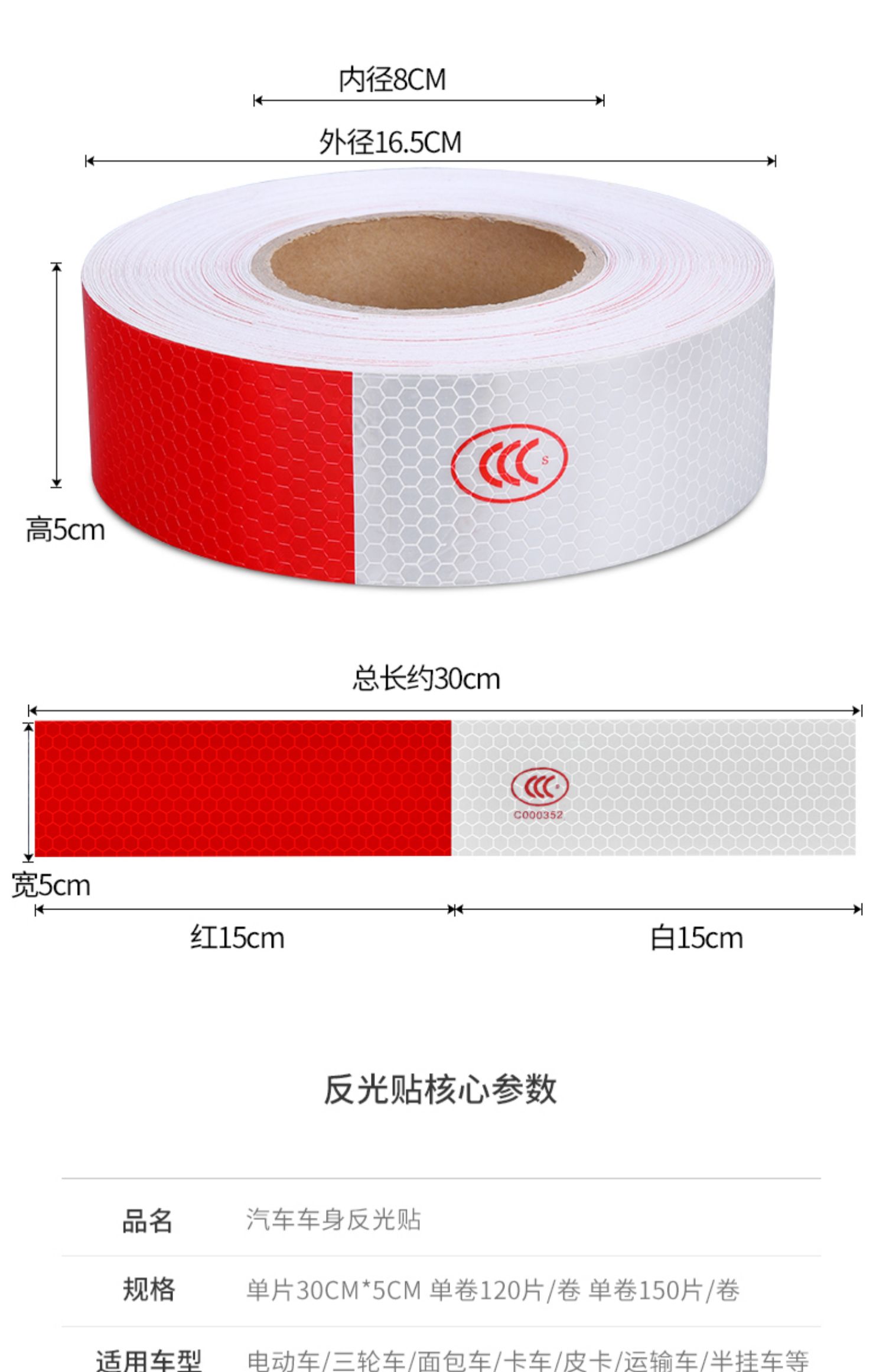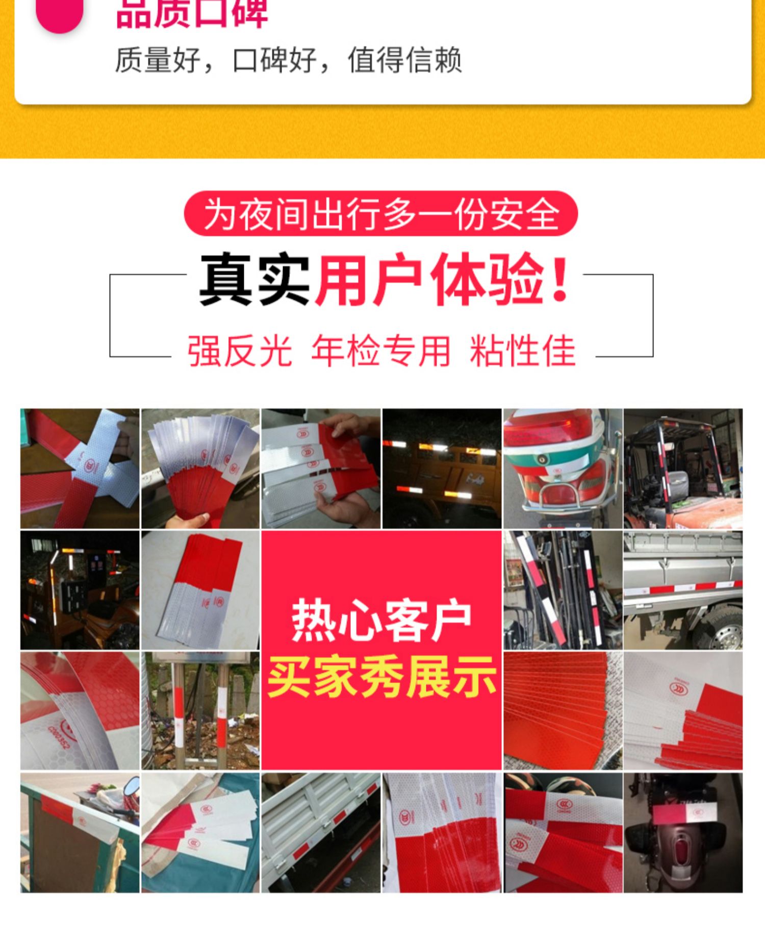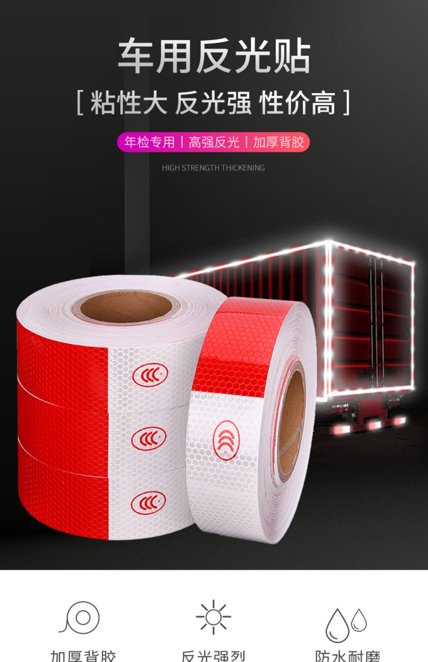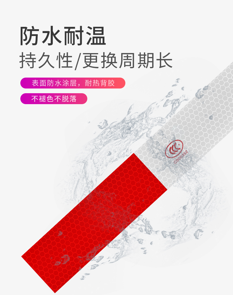 采用3M反光膜制作,自带背胶,即贴即用,操作简单。远距离光源照射下具有超强反光效果,保障夜晚行车安全!