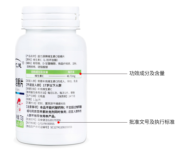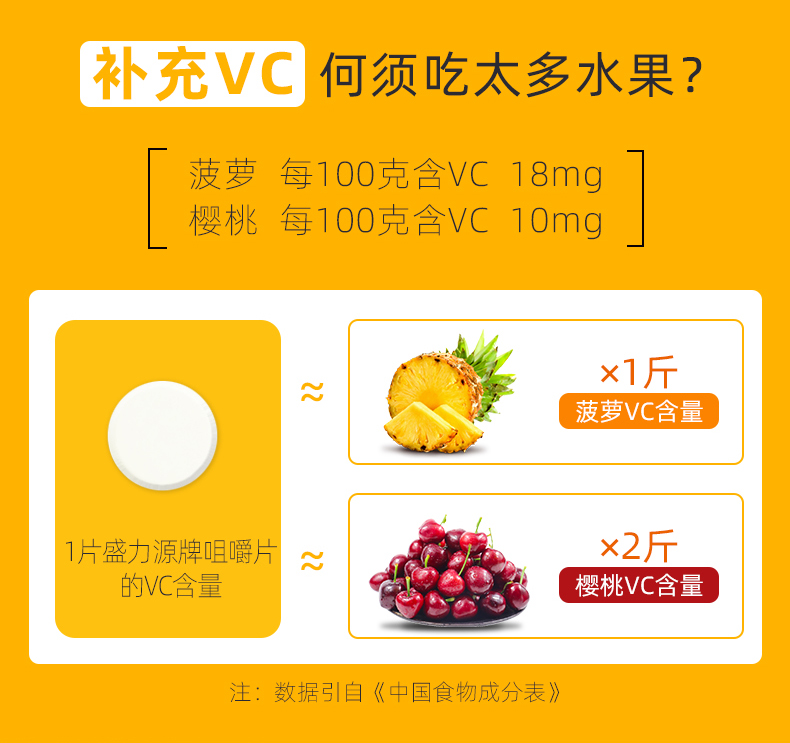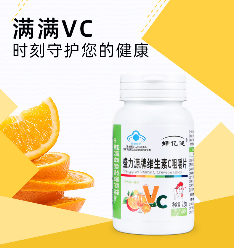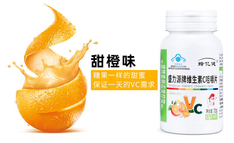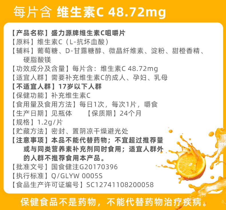 盛力源牌维生素C咀嚼片,酸甜香橙味,轻松补充日常所需维生素C,维持机体功能健康,抵抗自由基,美白抗衰老,提高免疫力,每天补充,健康更活力!