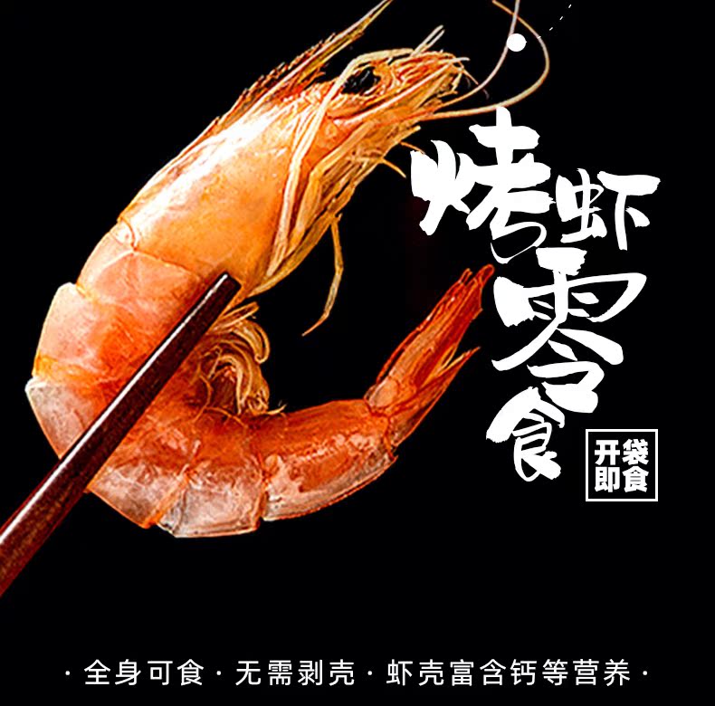 潮汕特产即食虾干,1斤鲜活对虾,只做2两烤虾,无防腐剂更健康,营养美味,开袋即食~