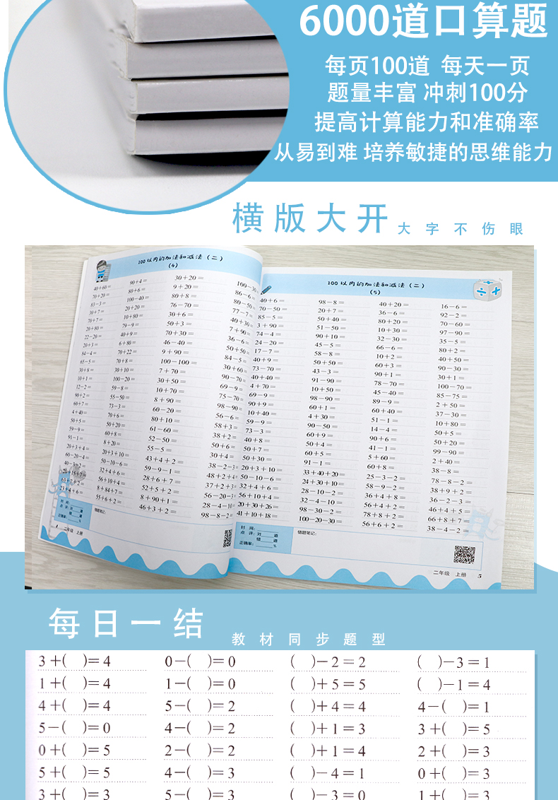 每天100道数学口算题,同步思维训练,100内加减法一年级下册数学口算速算.心算练习题二年级下册