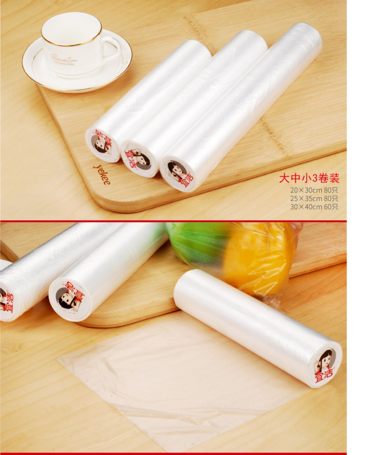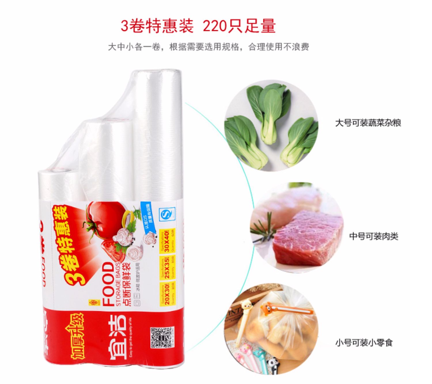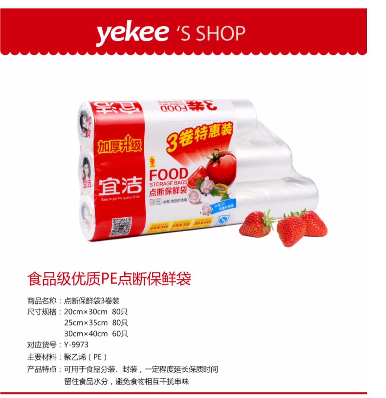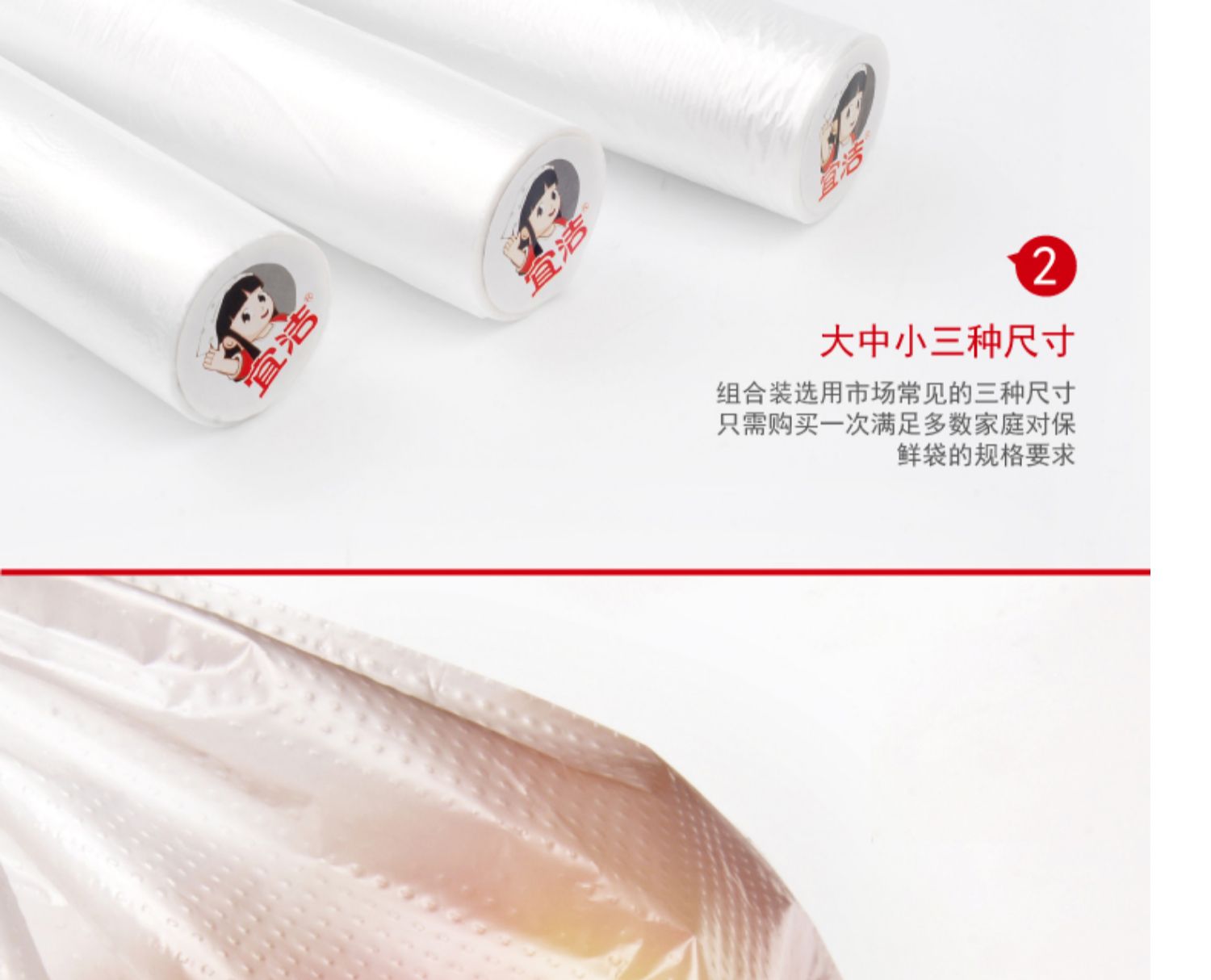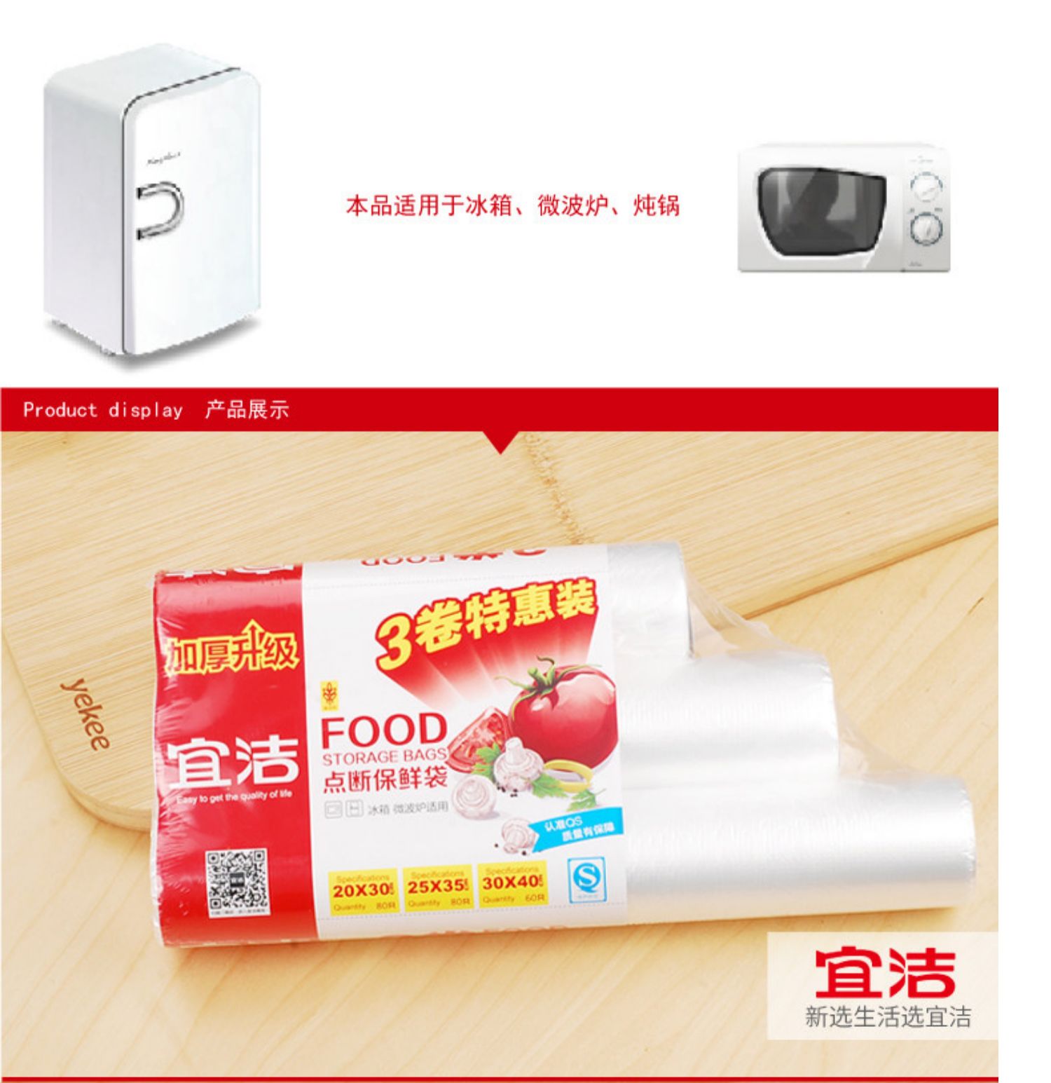 【宜洁】满2件送任意一件赠品,大中小三种组合装,选用优质PE材质,合理使用不浪费,环保卫生,点断易撕,一定程度延长保质时间,轻松留住食品水分,避免食物相互干扰。居家必备!