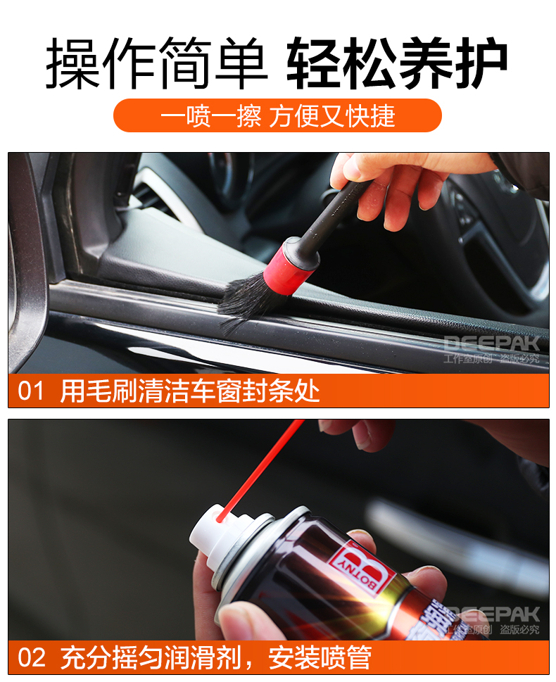 车门玻璃升降天窗轨道润滑油,汽车天窗玻璃升降车门专用,消除润滑油剂不腐蚀,防止龟裂,消除异响,延长使用时间!