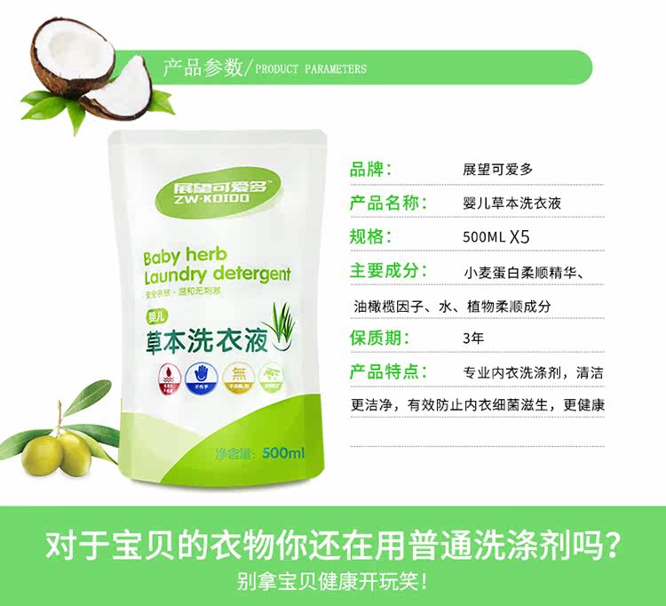 【血亏冲量可爱多母婴口碑大牌】【5袋装宝宝专用洗衣液】小麦蛋白精华+橄榄油因子,双倍深层清洁,去渍无残留,温和去污亲肤不伤手,不含荧光剂,洗宝宝衣物更放心,轻松解决妈妈护理难题。【破损包退】
