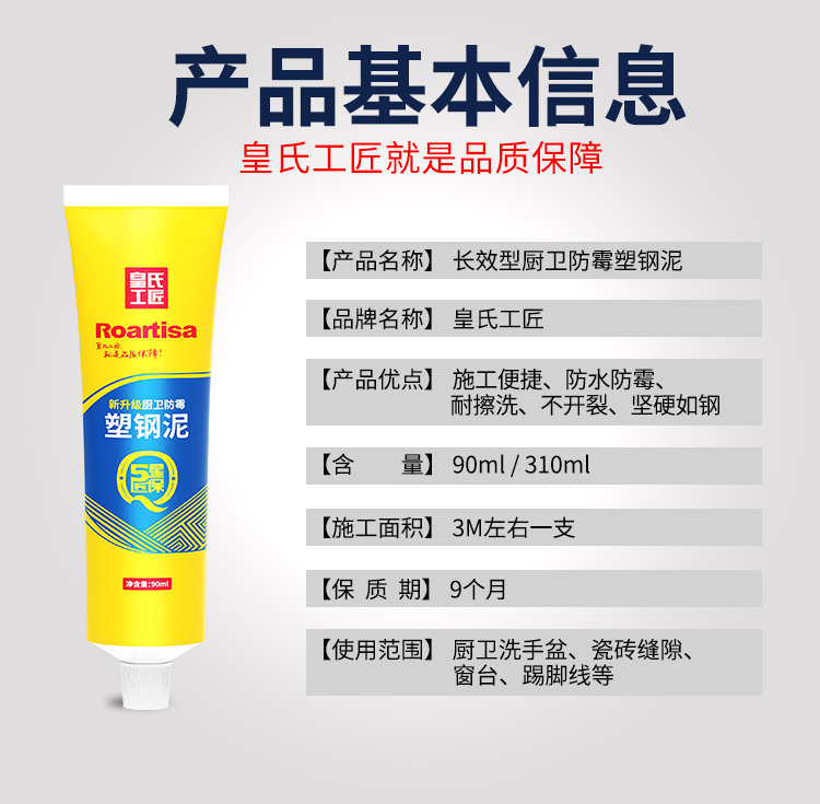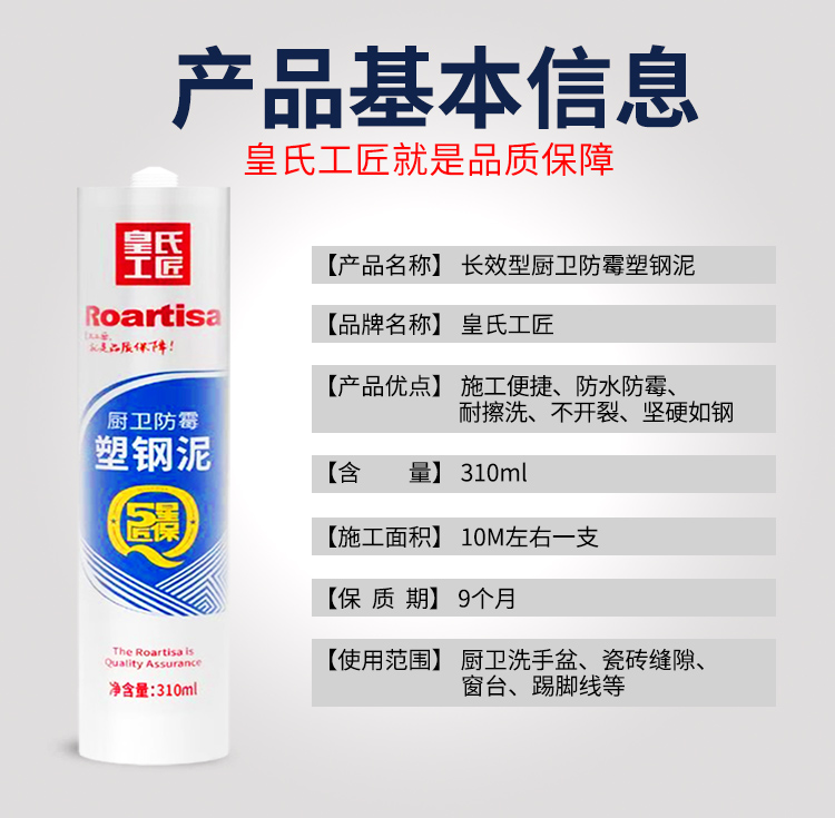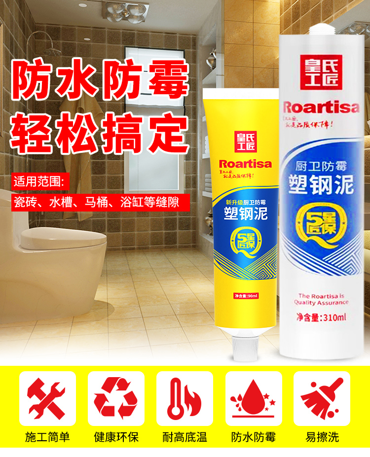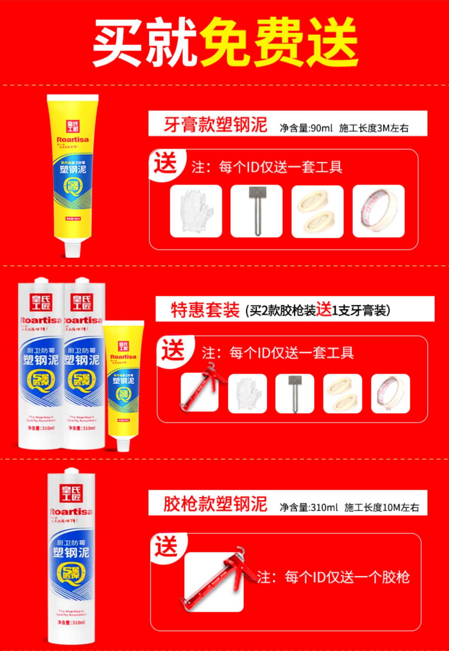 【买1送1】皇氏工匠塑钢泥,陶瓷胶,厨卫防水胶,防霉涂料,卫生间厕所补漏堵漏王泥,防水补漏,厨卫防水防霉,买1送1
