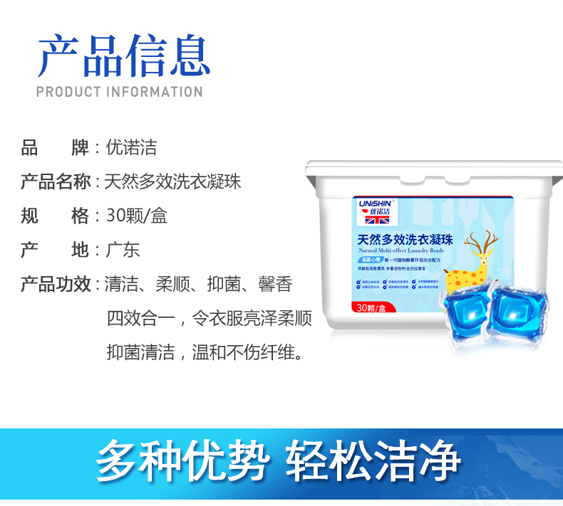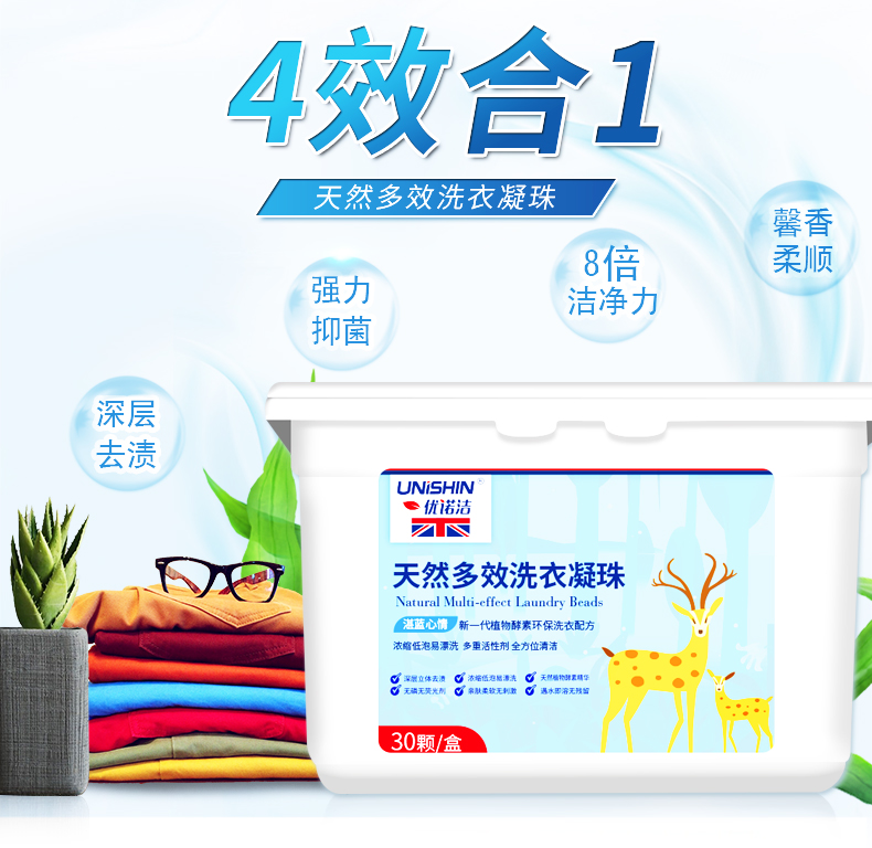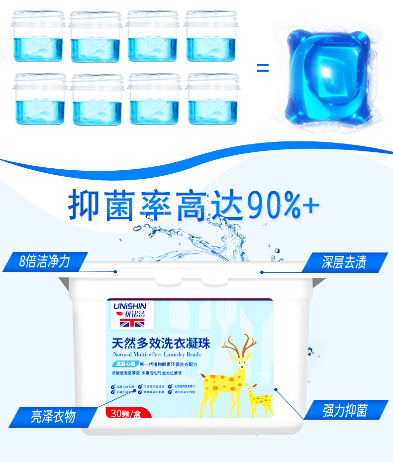 【第2件半价】深层去渍,强力抑菌,香味持久柔顺,!!!优诺洁天然多效洗衣凝珠。方便,留香,生态洗涤,关爱家人保护,添加APG,自然留香!【赠运费险】
