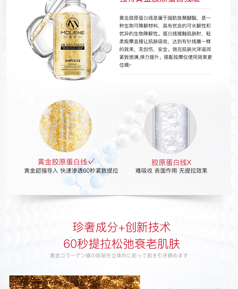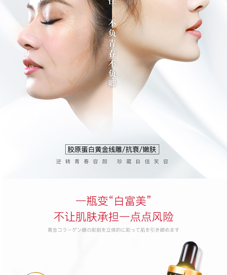 【买1送1】金丝线雕面部精华原液,亮泽肌肤,增加肌肤弹性,改善松弛肌肤活性,弹紧实、紧致细滑,消除皱纹~让你重返18岁!推迟皮肤衰老,让肌肤润滑如丝光滑饱满,绽放肌肤迷人光彩!