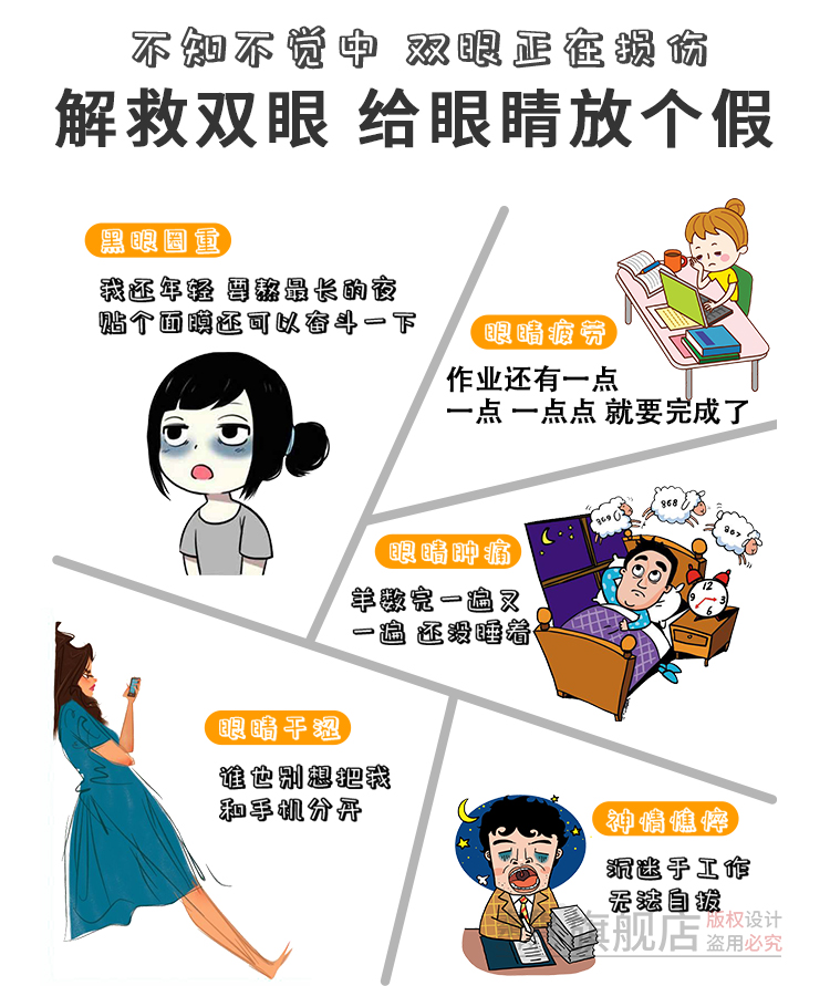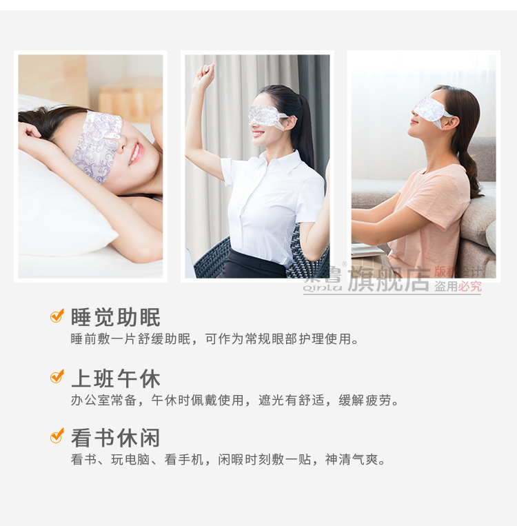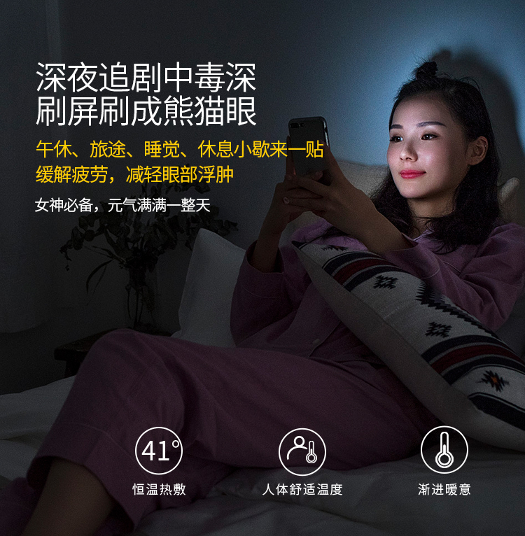 保护视力,缓解眼疲劳,滋润眼部,蒸灸双效,亲肤挂耳,柔软舒适。简直太舒服了,放在单位,中午睡觉时候用,特别缓解眼部疲劳!一定要试试