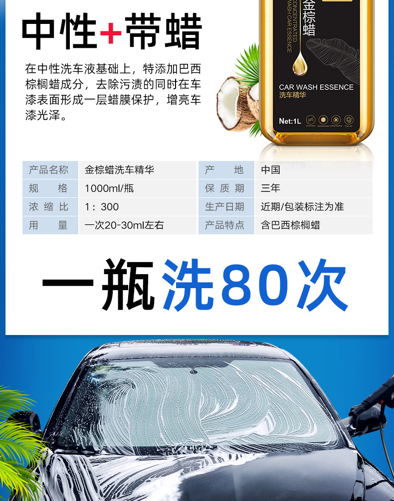 【超值3瓶装!】升级中性+带蜡配方,集清洁和打蜡于一身,焕亮车漆光泽,泡沫细腻丰富,温和清洁不刺激,水镀蜡膜保护,防灰尘防静电,全方位保护车身!有车一族必备洗车用品!