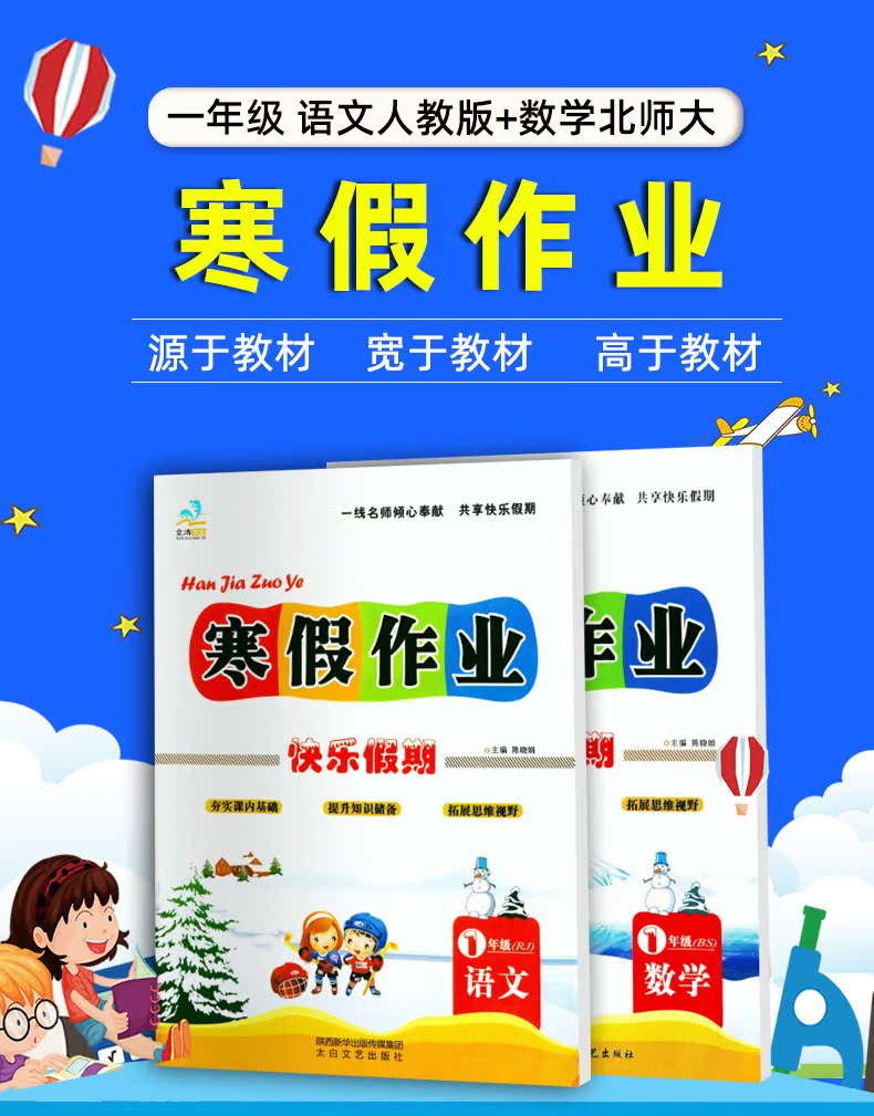 【语数两本】2020新版语文人教版数学北师大版一年级寒假作业,纸质优良,正版防伪,知识归纳,提炼升华,为学生搭建进步的阶梯!