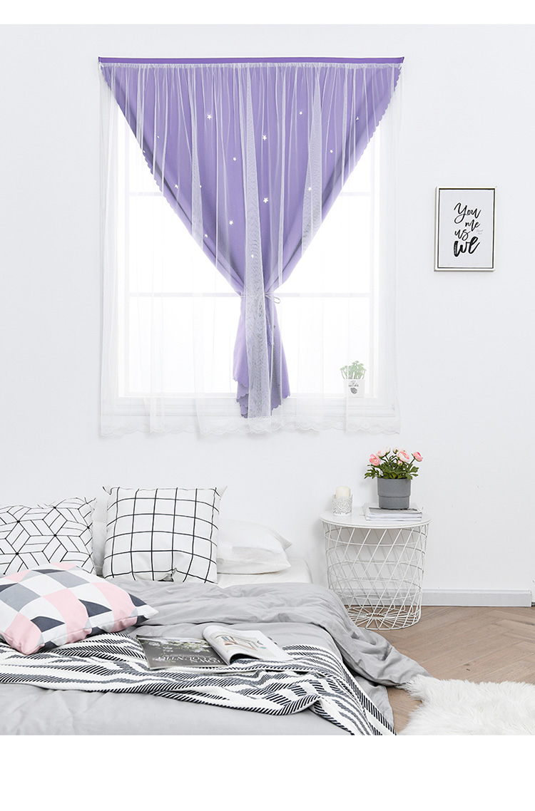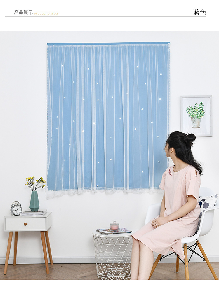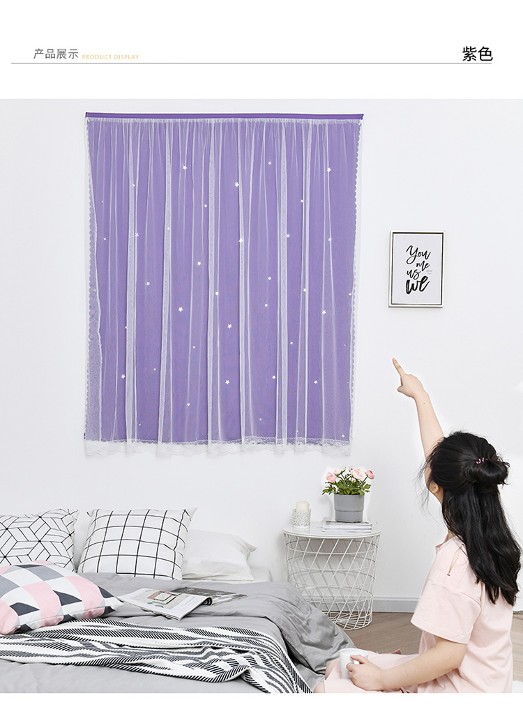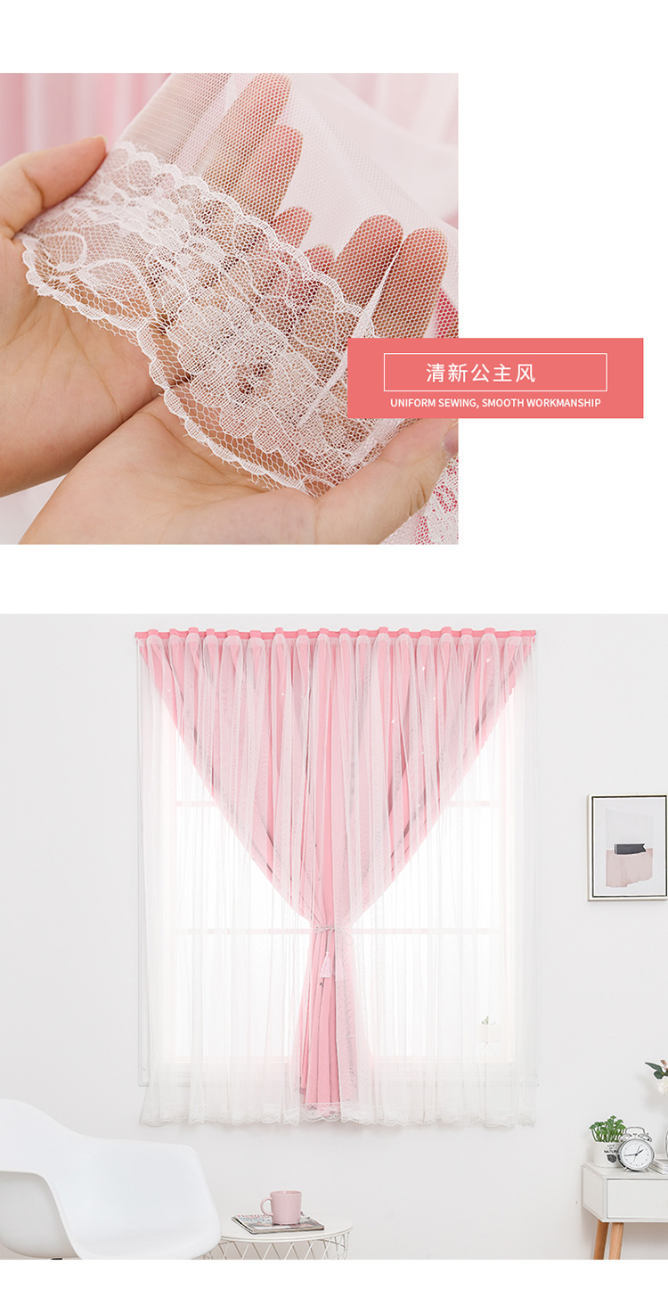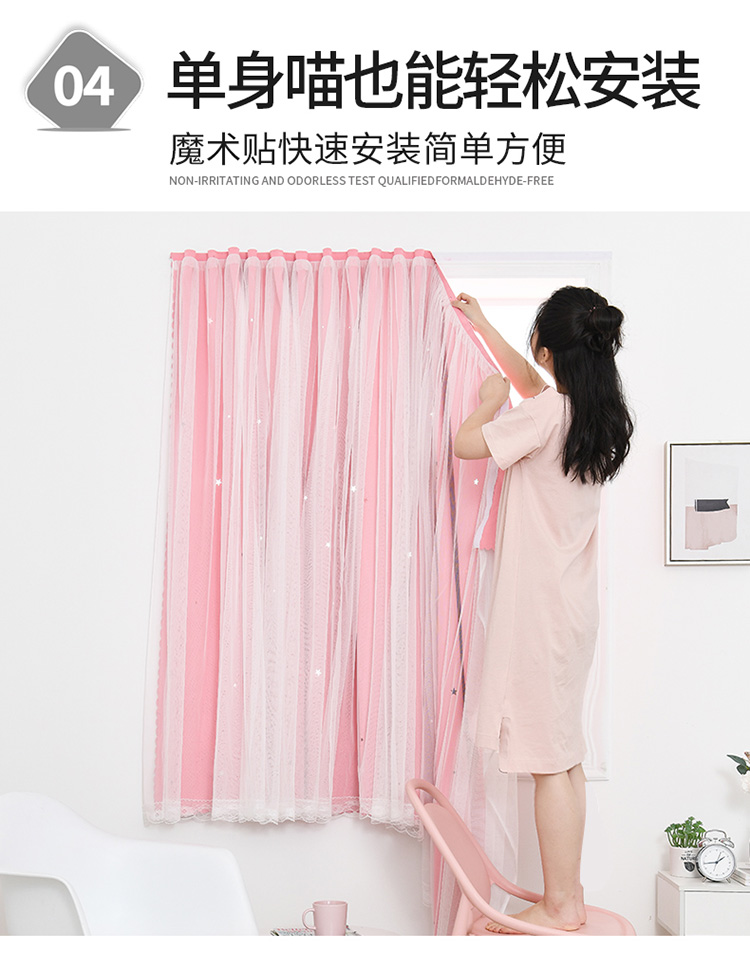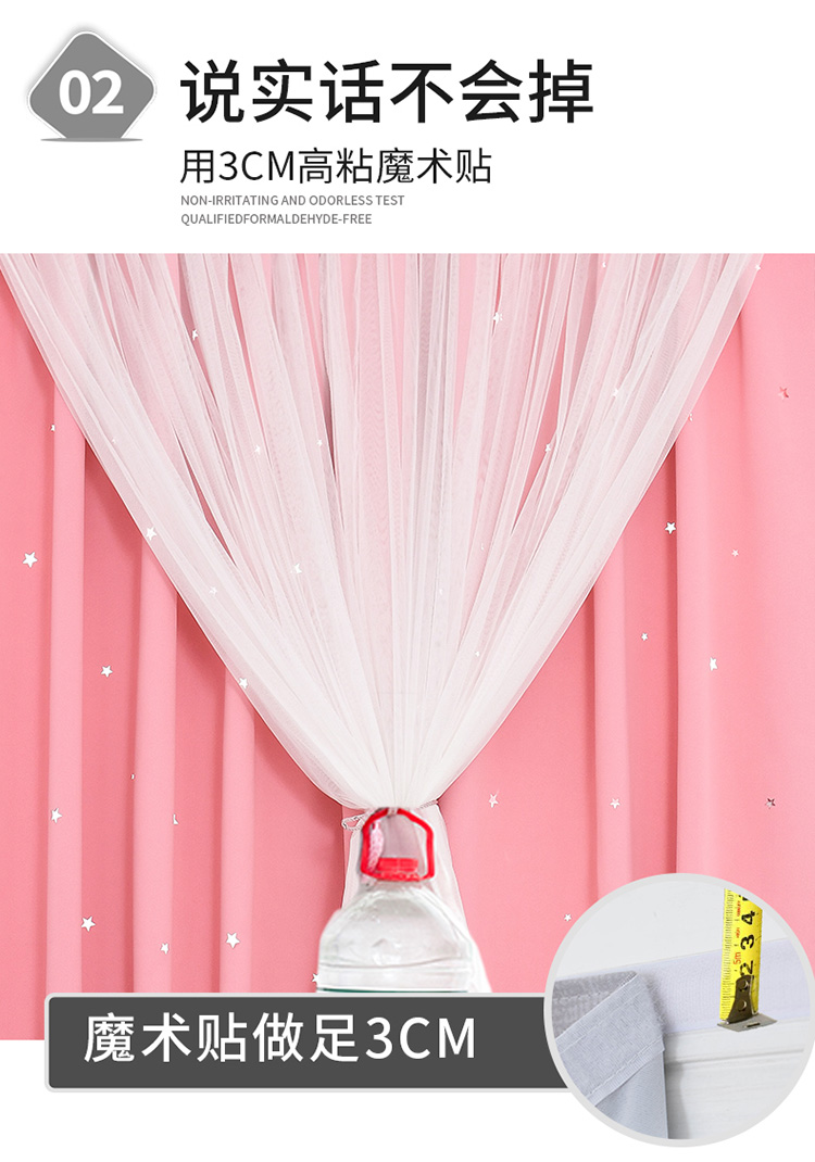 网红免打孔魔术贴窗帘,少女公主风,纯色面料蕾丝花边,赠送魔术贴,简单易安装!搭配蕾丝纱和星星灯带瞬间让家里充满暖暖的温馨和爱!