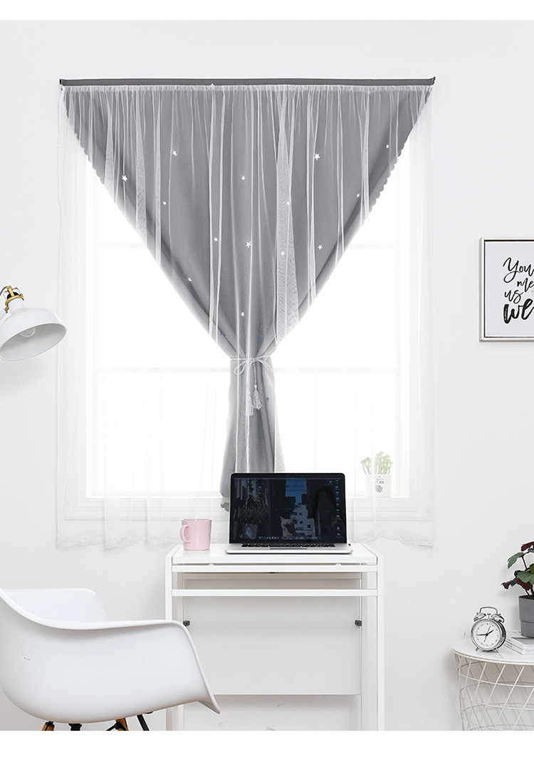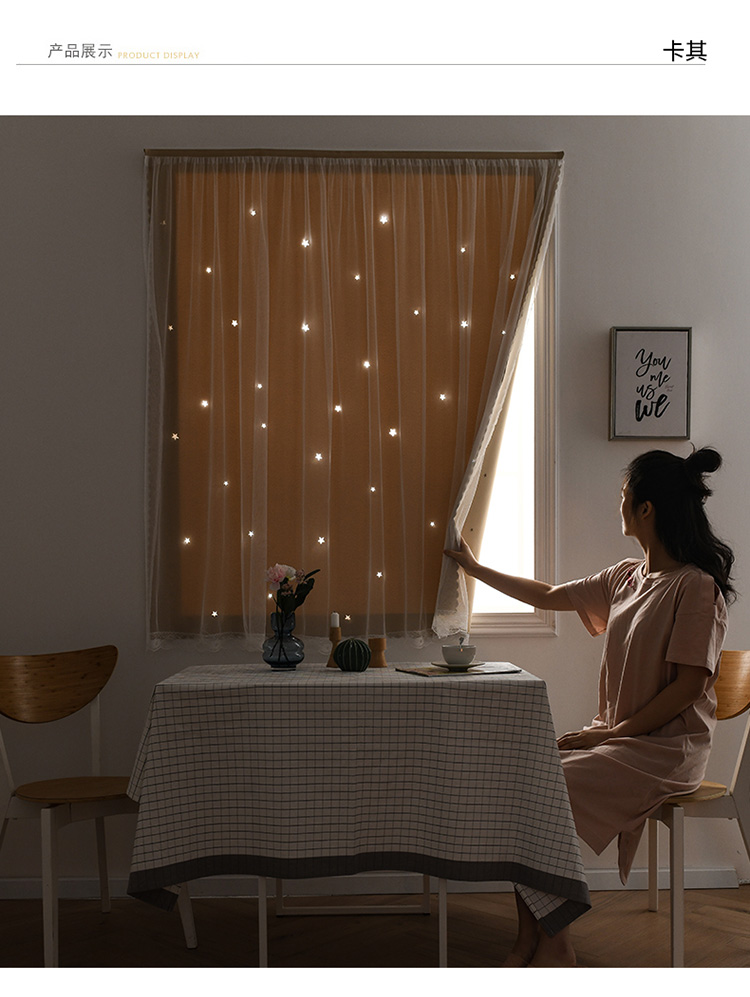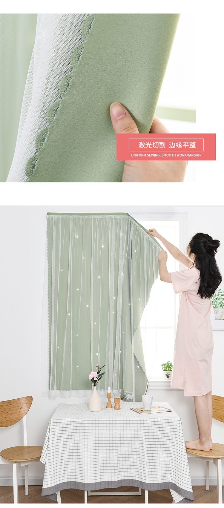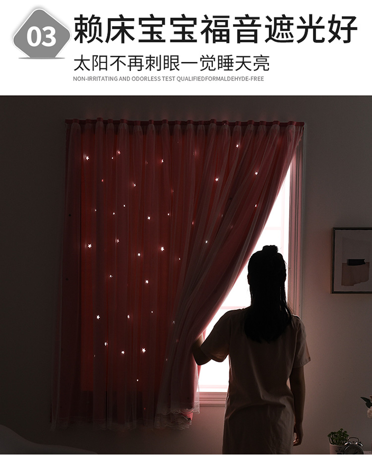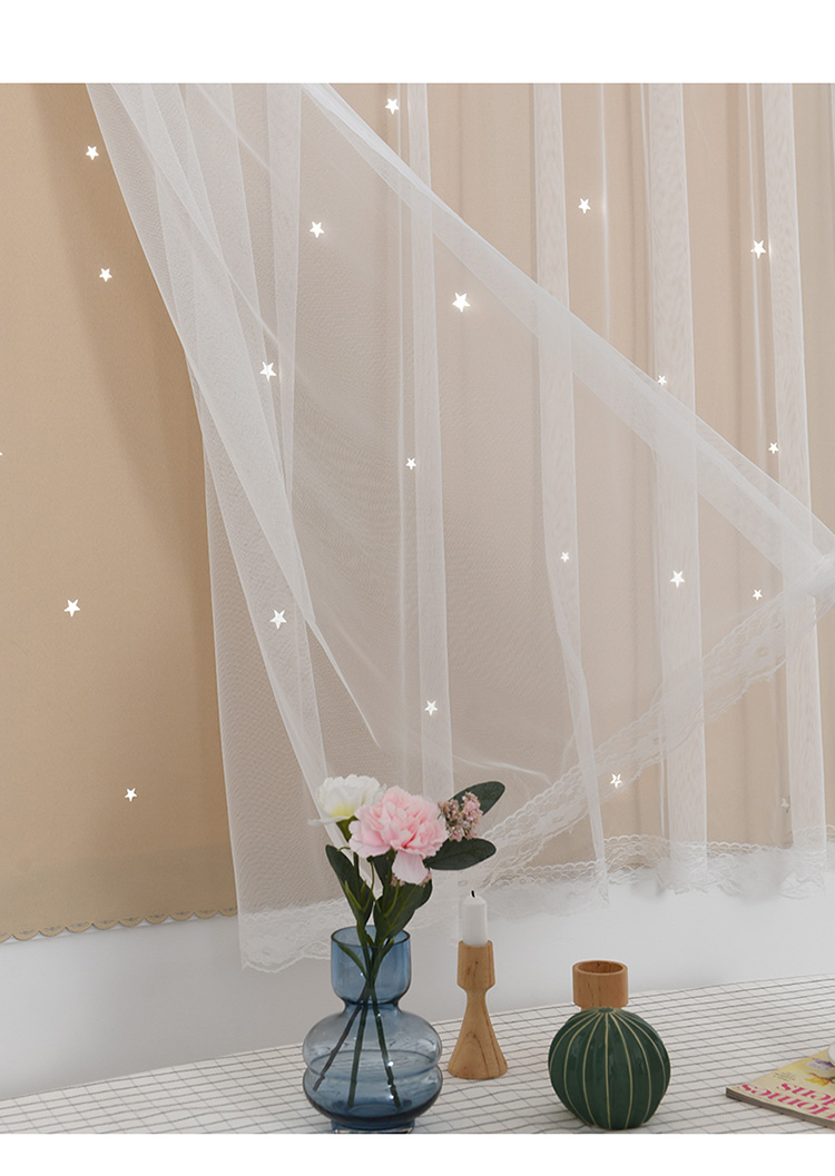 网红免打孔魔术贴窗帘,少女公主风,纯色面料蕾丝花边,赠送魔术贴,简单易安装!搭配蕾丝纱和星星灯带瞬间让家里充满暖暖的温馨和爱!