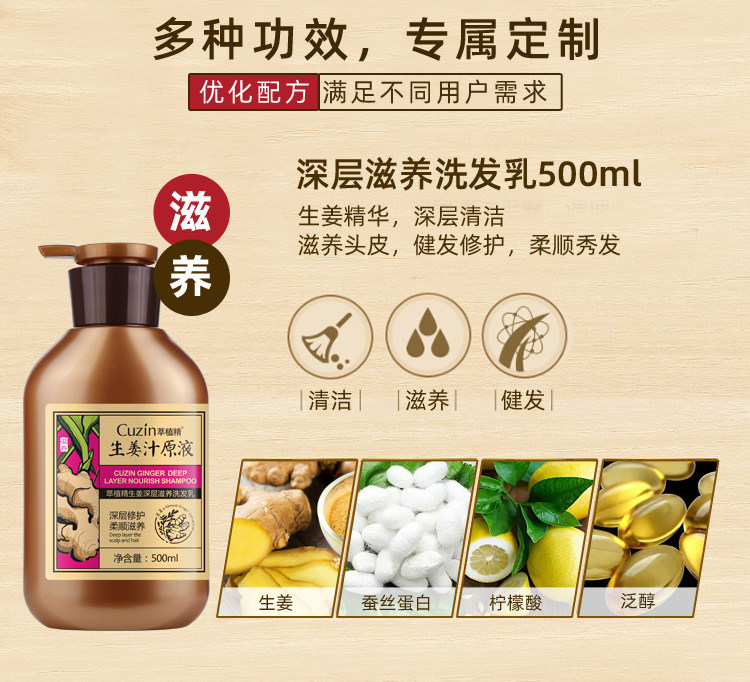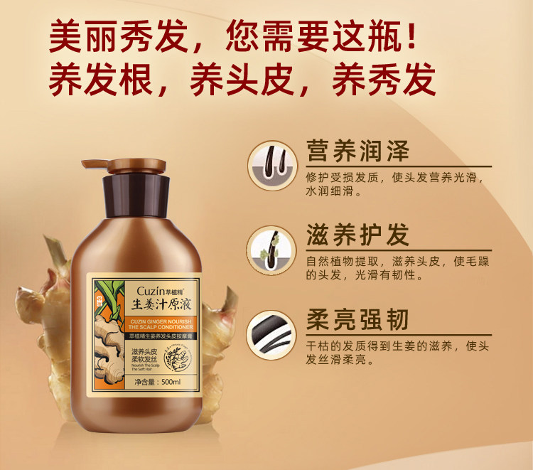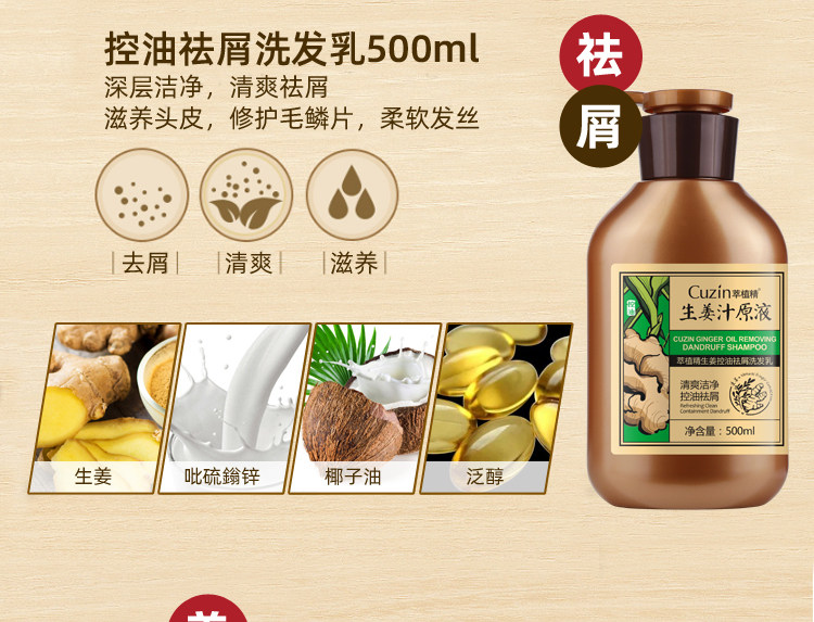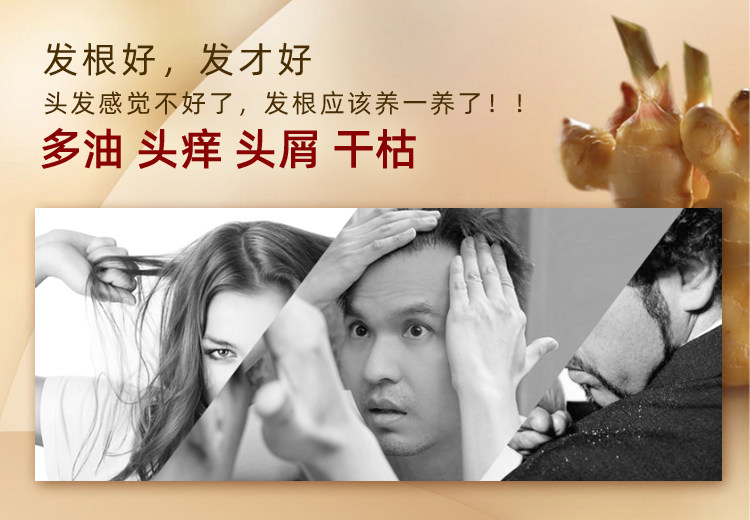 蕴含生姜精华,温和滋润,有效修复烫染后的脆弱头发,深度滋养,柔软顺滑,去屑止痒,强健发丝,让你跟“大油头”说拜拜!