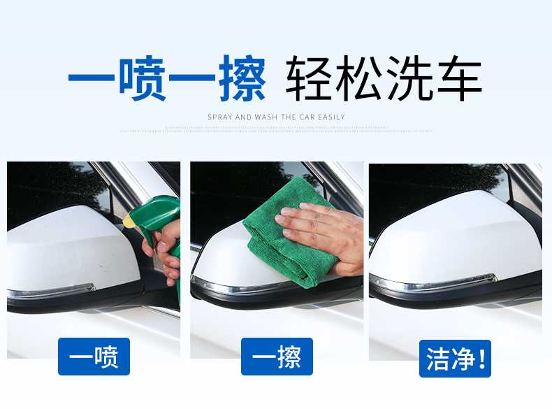 无需水洗,快捷洗车,爱车去污焕新,天天开新车,买就送擦车毛巾,随时随地都可以洗车,一喷一擦,洁净闪亮,不用一滴水,快捷省力!
