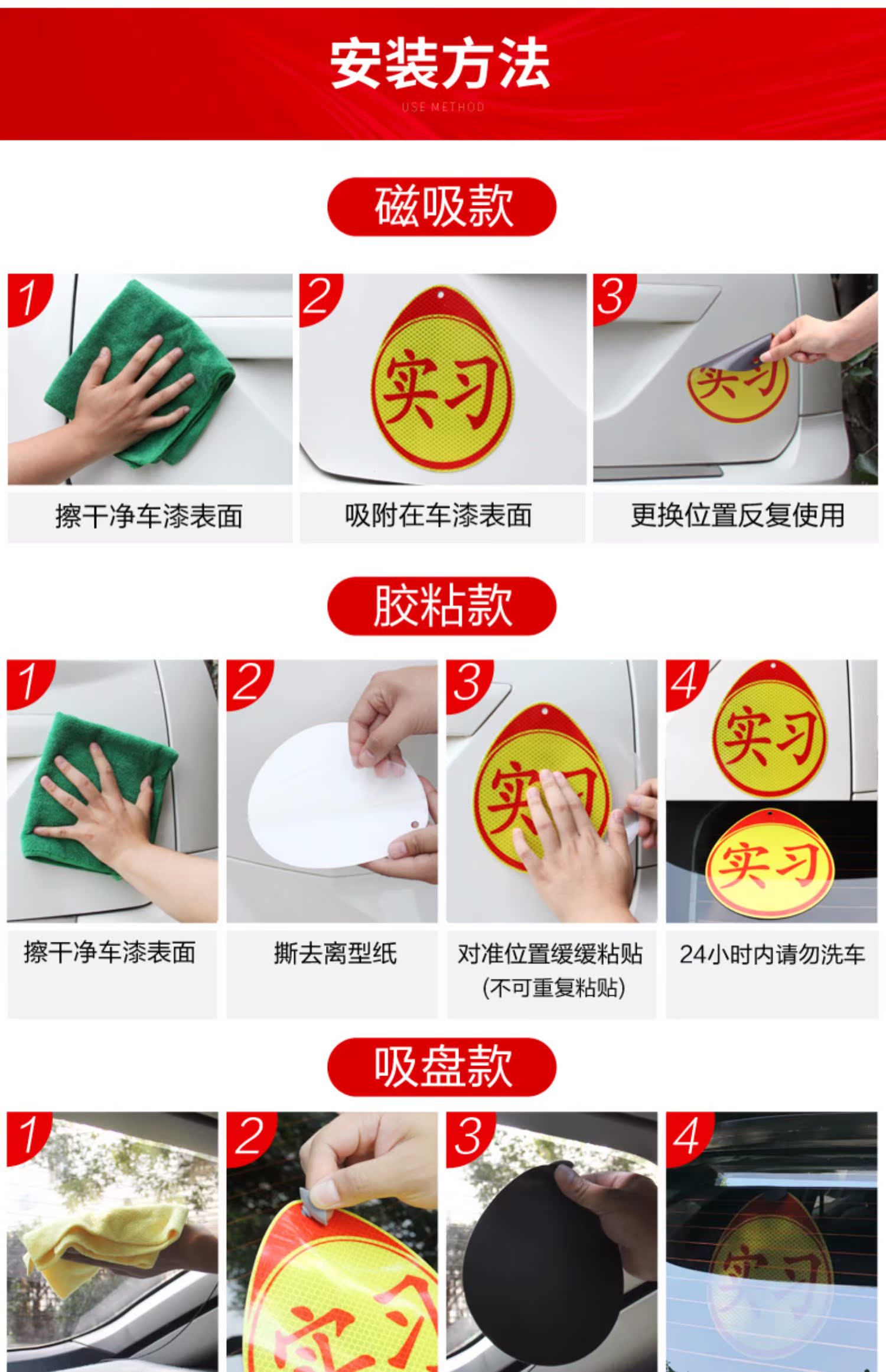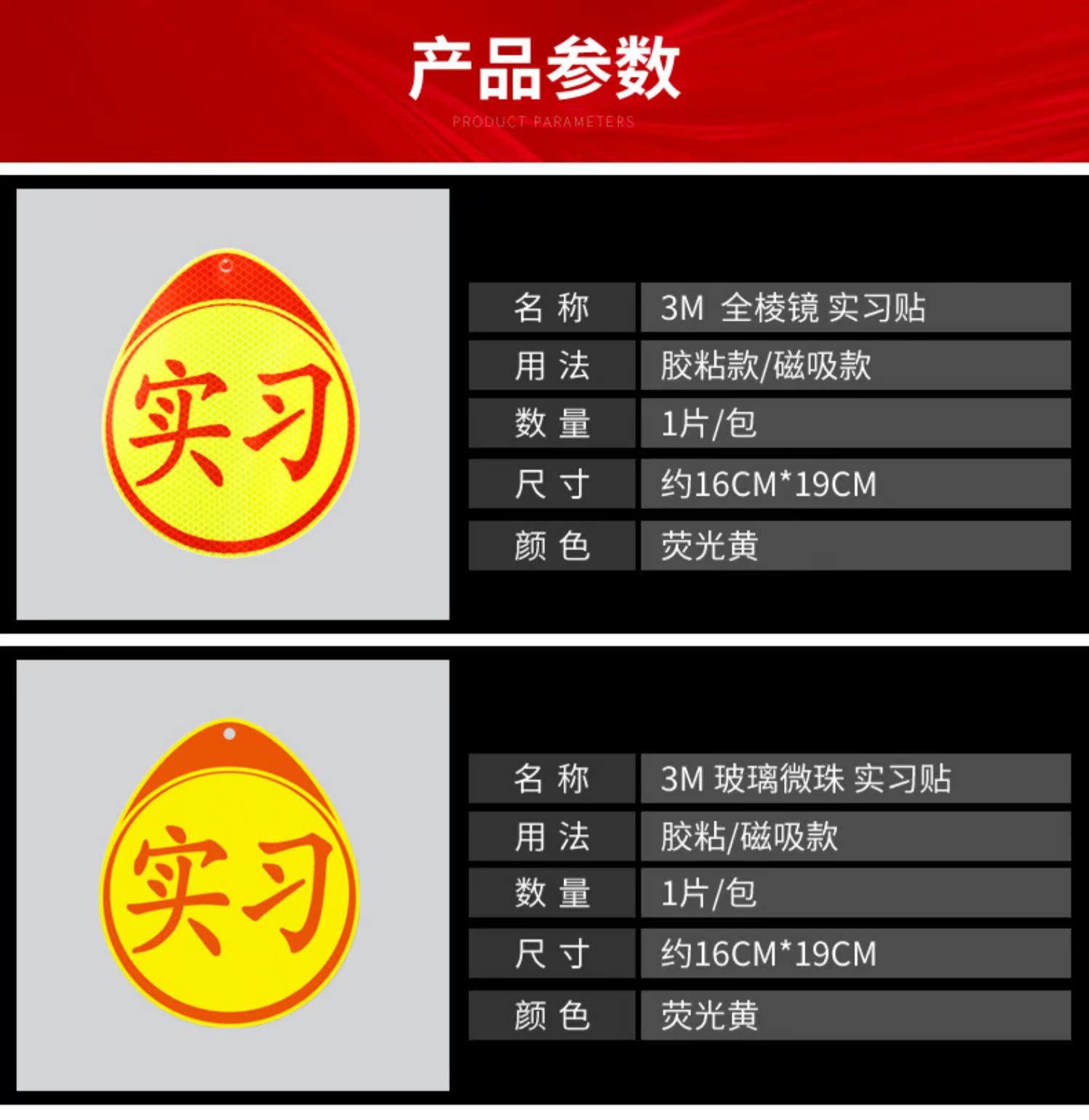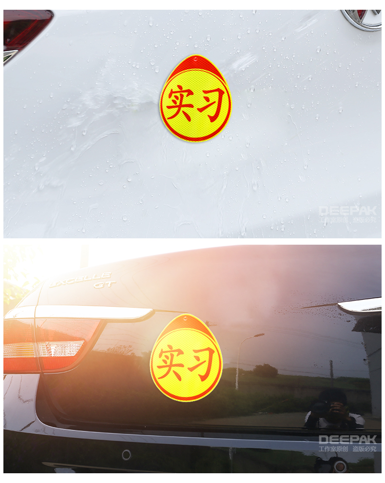 汽车实习贴纸新手上路统一标志,强烈反光,防水抗晒,自带背胶,即贴即用,操作简单。广角度反光警示,超强反光,专治远光狗,保障夜晚行车安全。{送清洁软胶+吸盘}