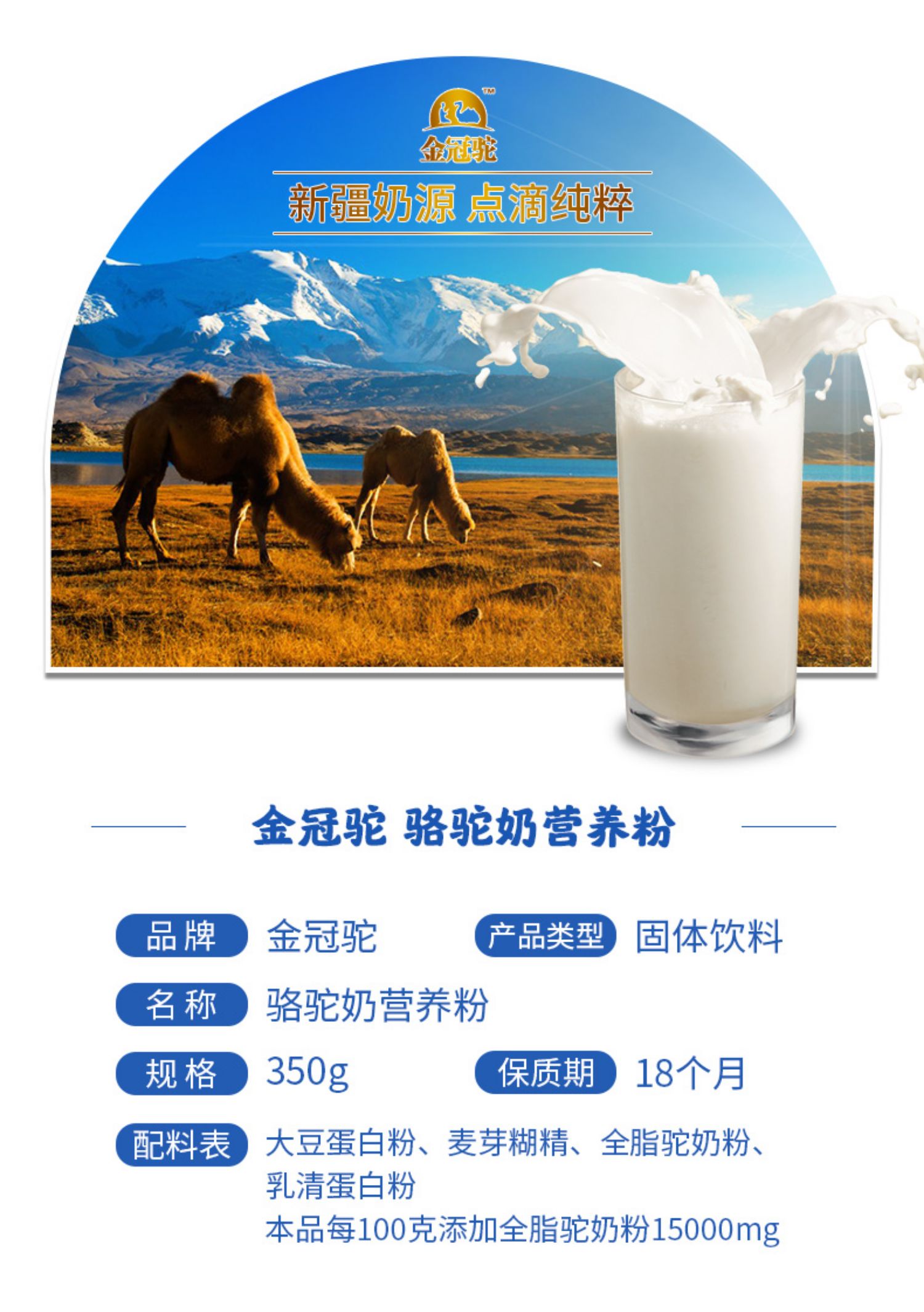 然新疆奶源骆驼奶,沙漠中的白金骆驼奶,富含十多种氨基酸和维生素。大人小孩均适合!自己喝,送家人朋友太划算!线下同档次400多一罐