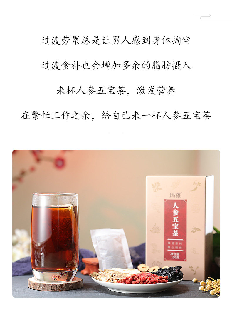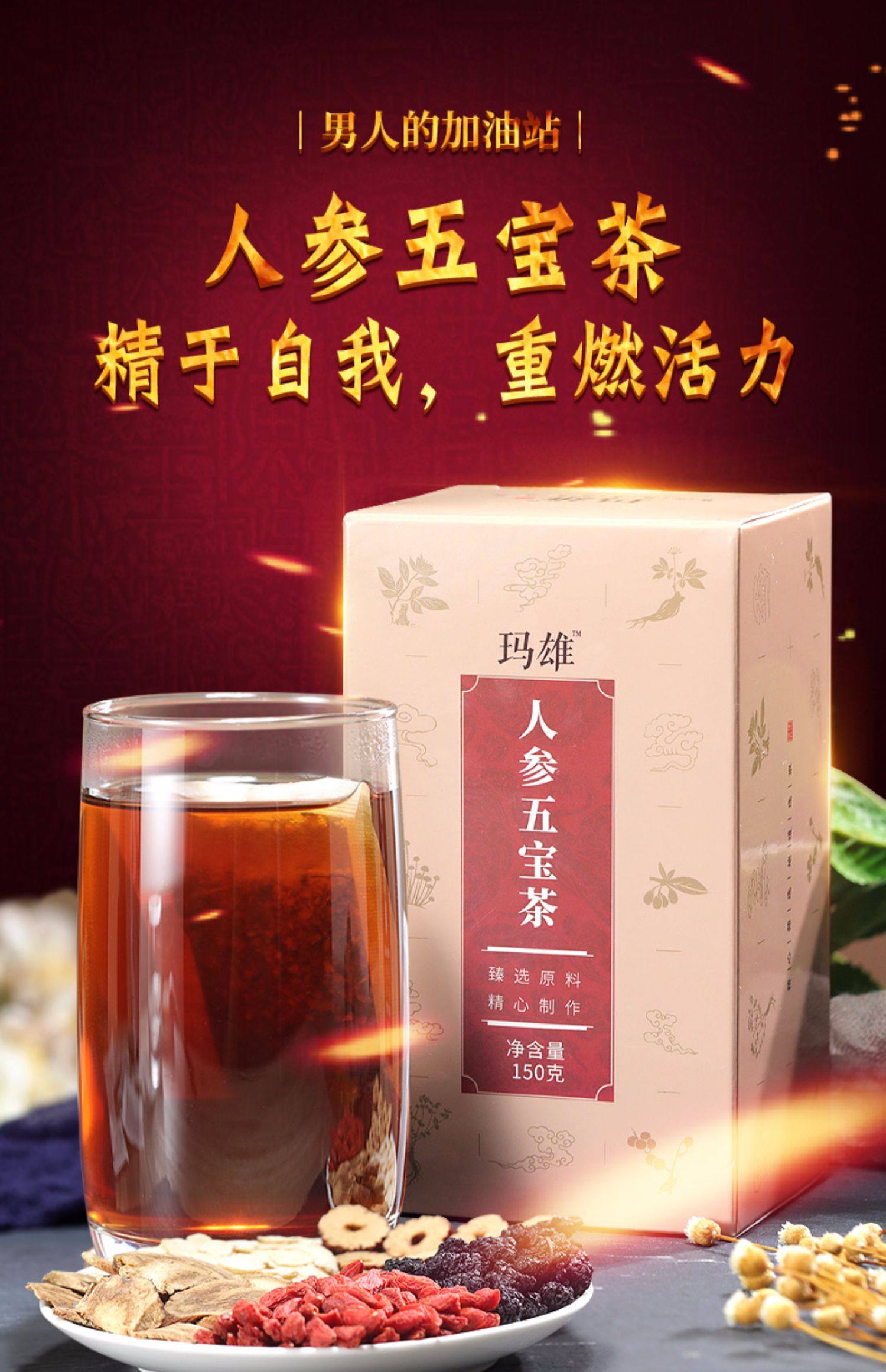 特惠风暴!4.8高评分!福东海五宝茶用于治疗肾虚,能温补肾气、补肾固本,营养丰富且有活血、清火、壮阳、益神、养颜之功效【赠运费险】
