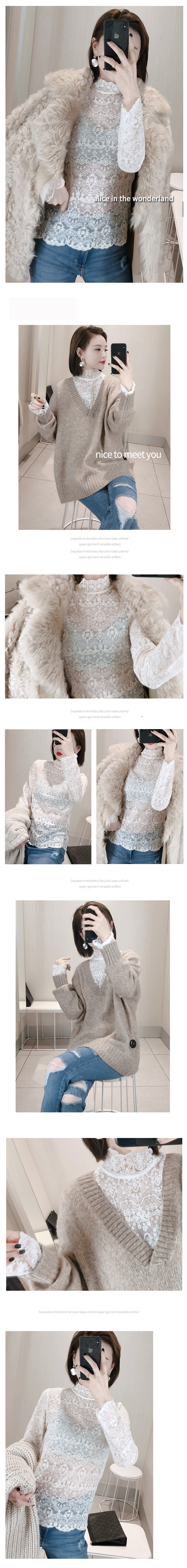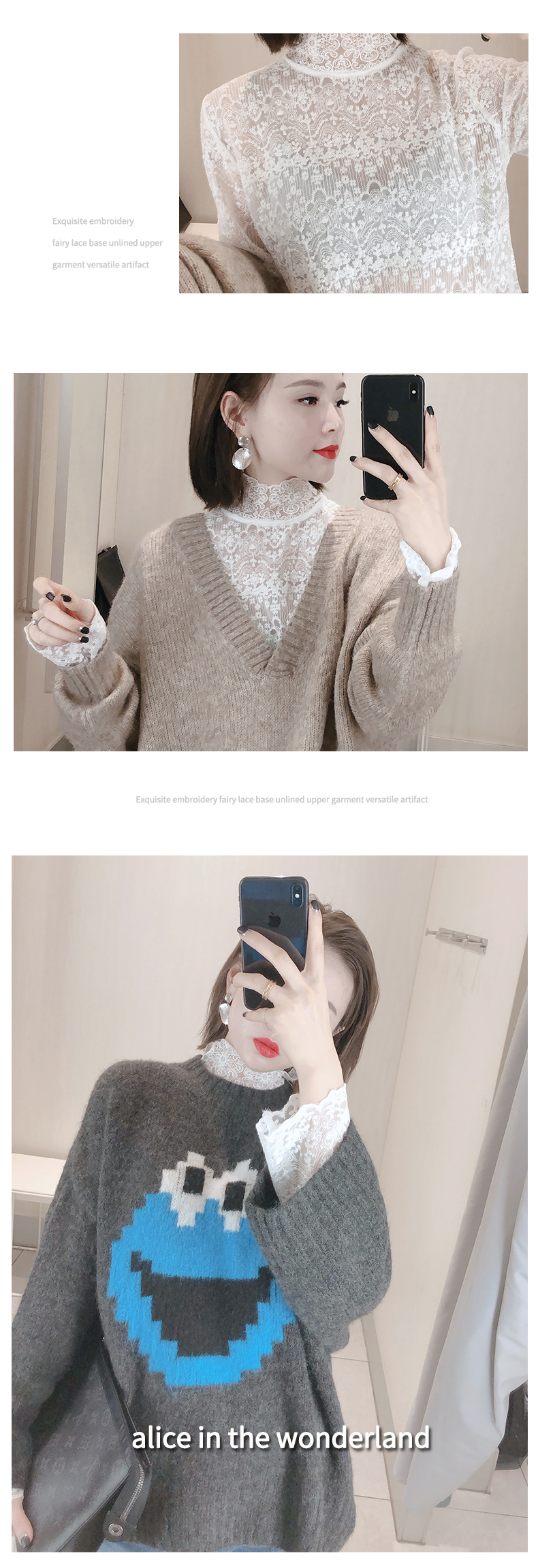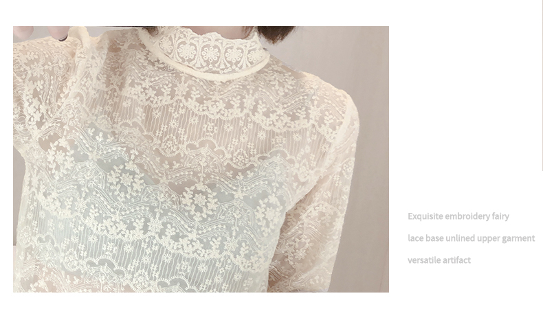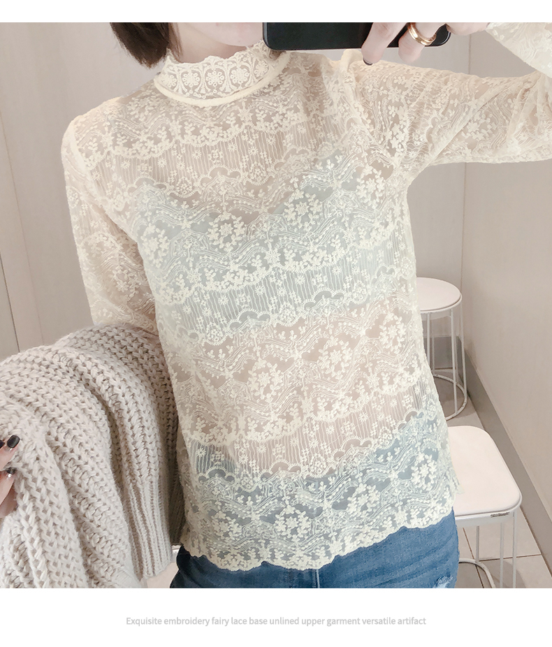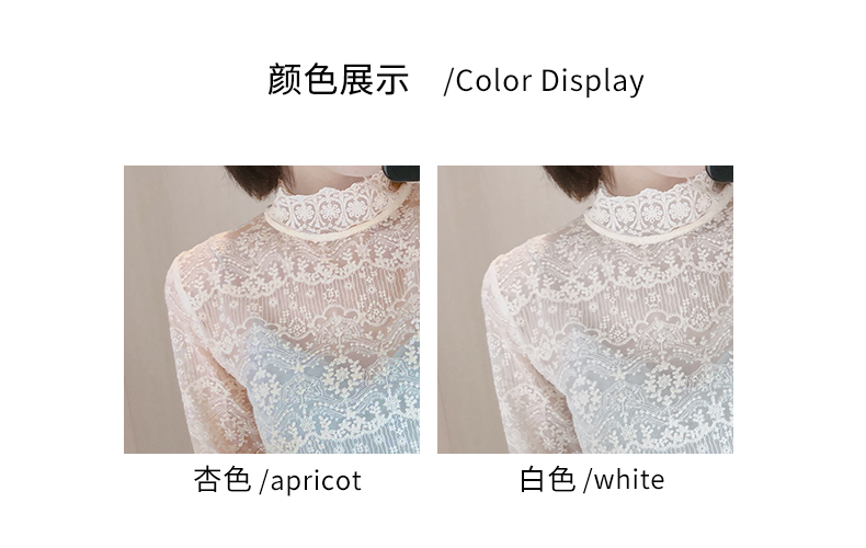 镂空内搭蕾丝打底衫,柔软百搭,秀气的花边半高领设计,着实让人眼前一亮,打底或者搭配轻松出街,秋冬宽松款衣服,亦或者是长裙,造型随您穿搭。