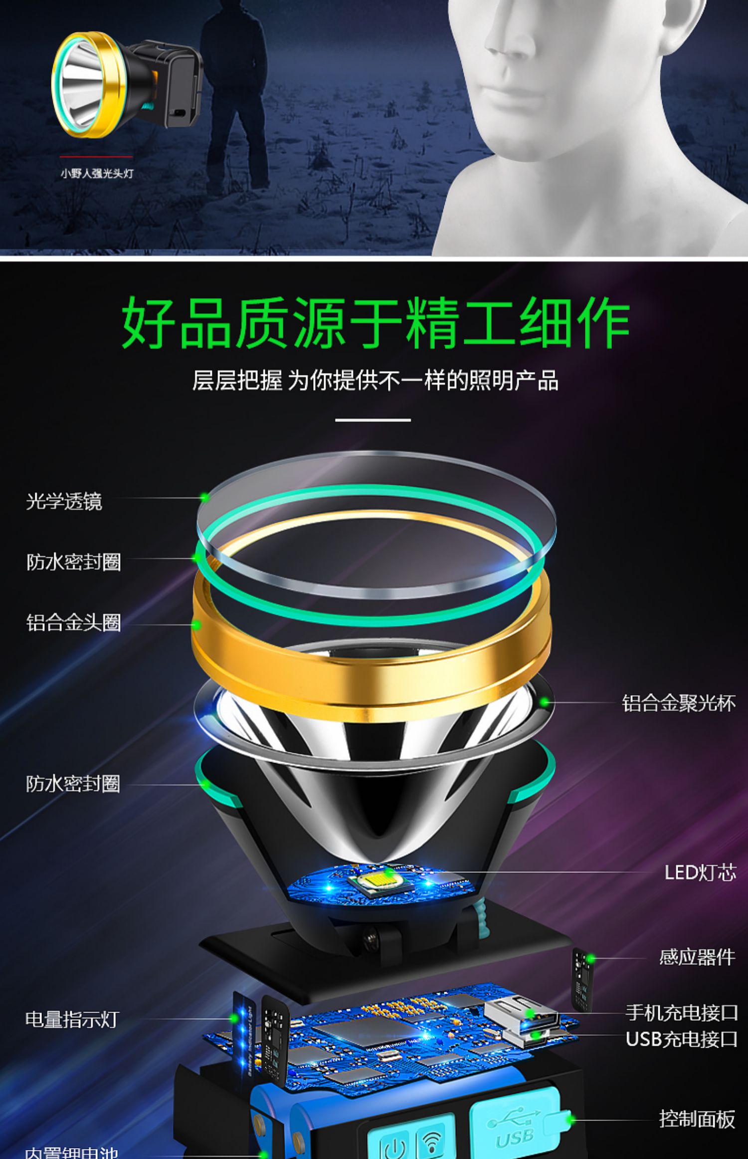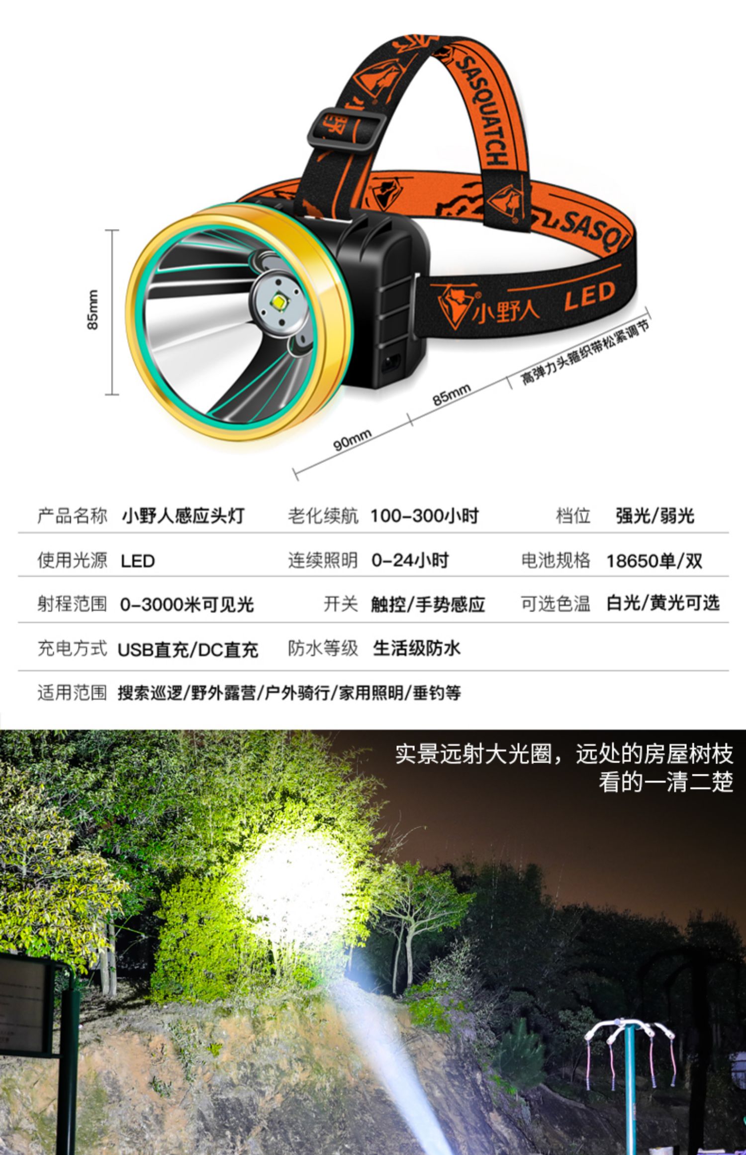 【小野人】收藏人气10万+!16万好评强推!买到就是赚到!高亮LED疝气灯芯,千米远射,USB充电,防水耐用,大容量锂电池,超强续航100小时,户外运动/夜行/打猎必备之选!速抢!