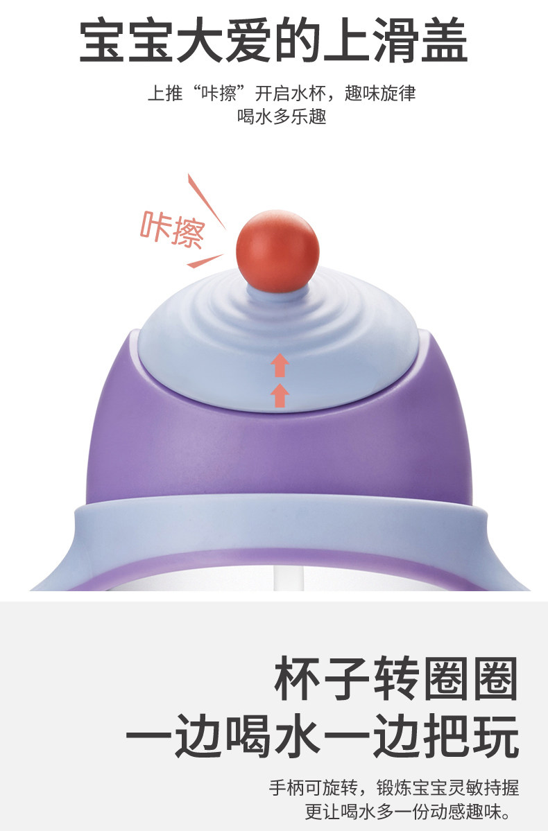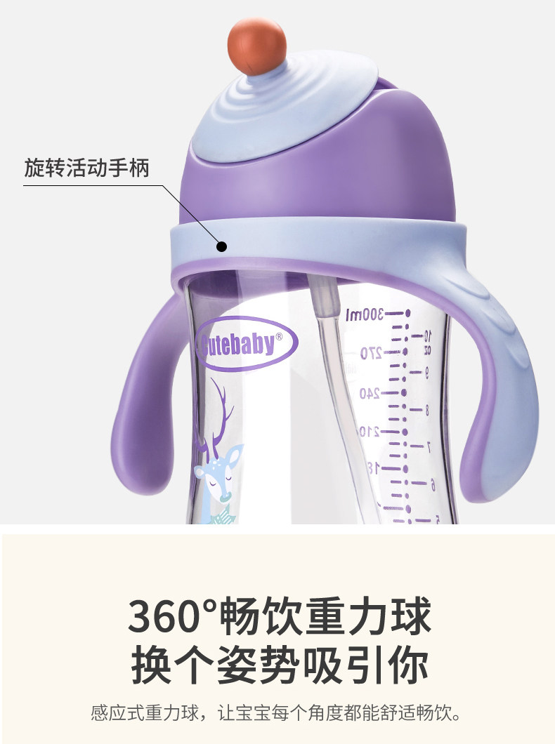 食品级环保材质,安全无异味,不含BPA,有重力球,防防呛,旋转活动手柄,升级V型咬合管,可装开水烫洗,让孩子爱上喝水!【赠运费险】