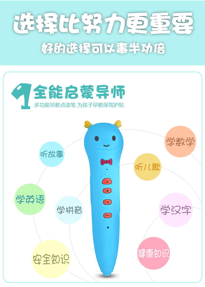 【抖音同款】个性儿童英文启蒙点读笔,出版社授权原声点读,即点即播,给孩子更地道,悦耳的声动,专为孩子的小手设计,让孩子爱不释手!现在购买,即赠40册启蒙早教图书!