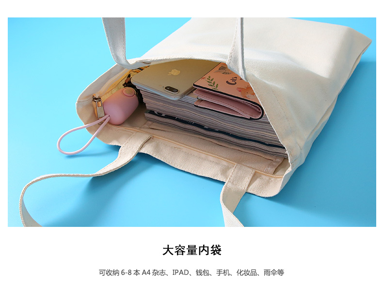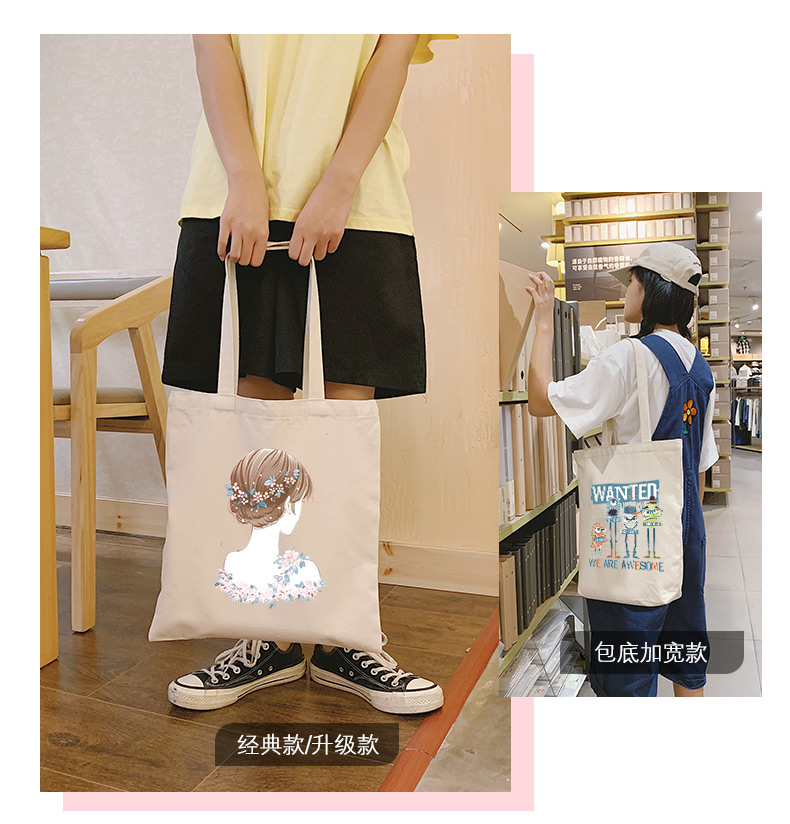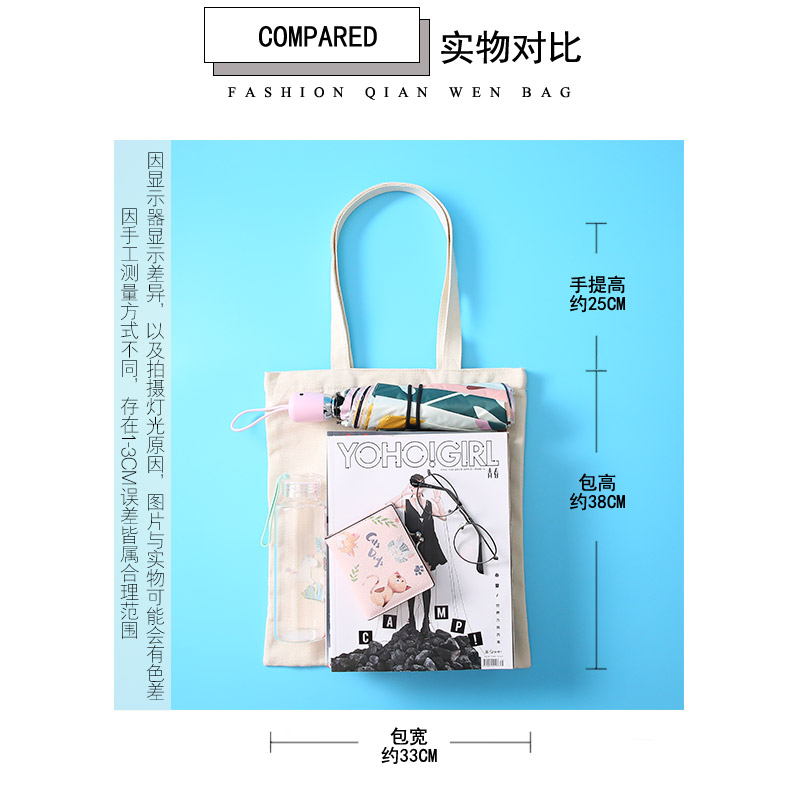 优质耐磨帆布,文艺小清新手提购物袋,背起来舒服有质感,超大容量,随心装,上课出街一个就够了,简单搭配也能轻松获取文艺感。【赠运费险】