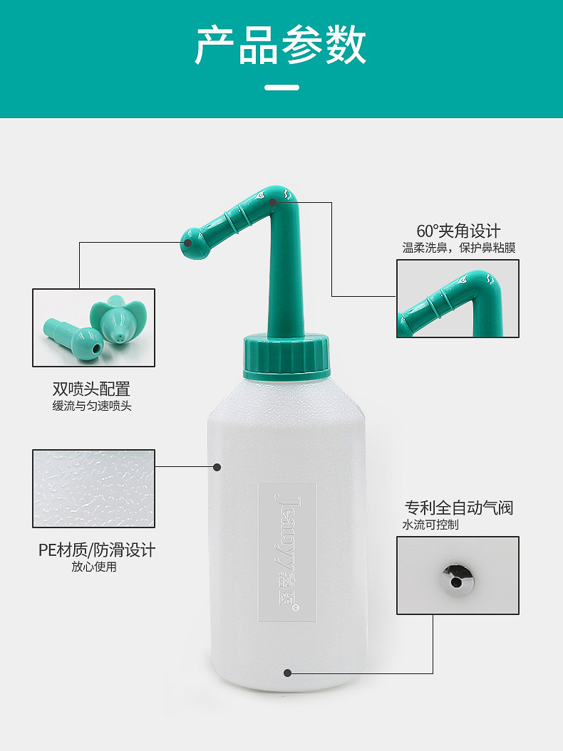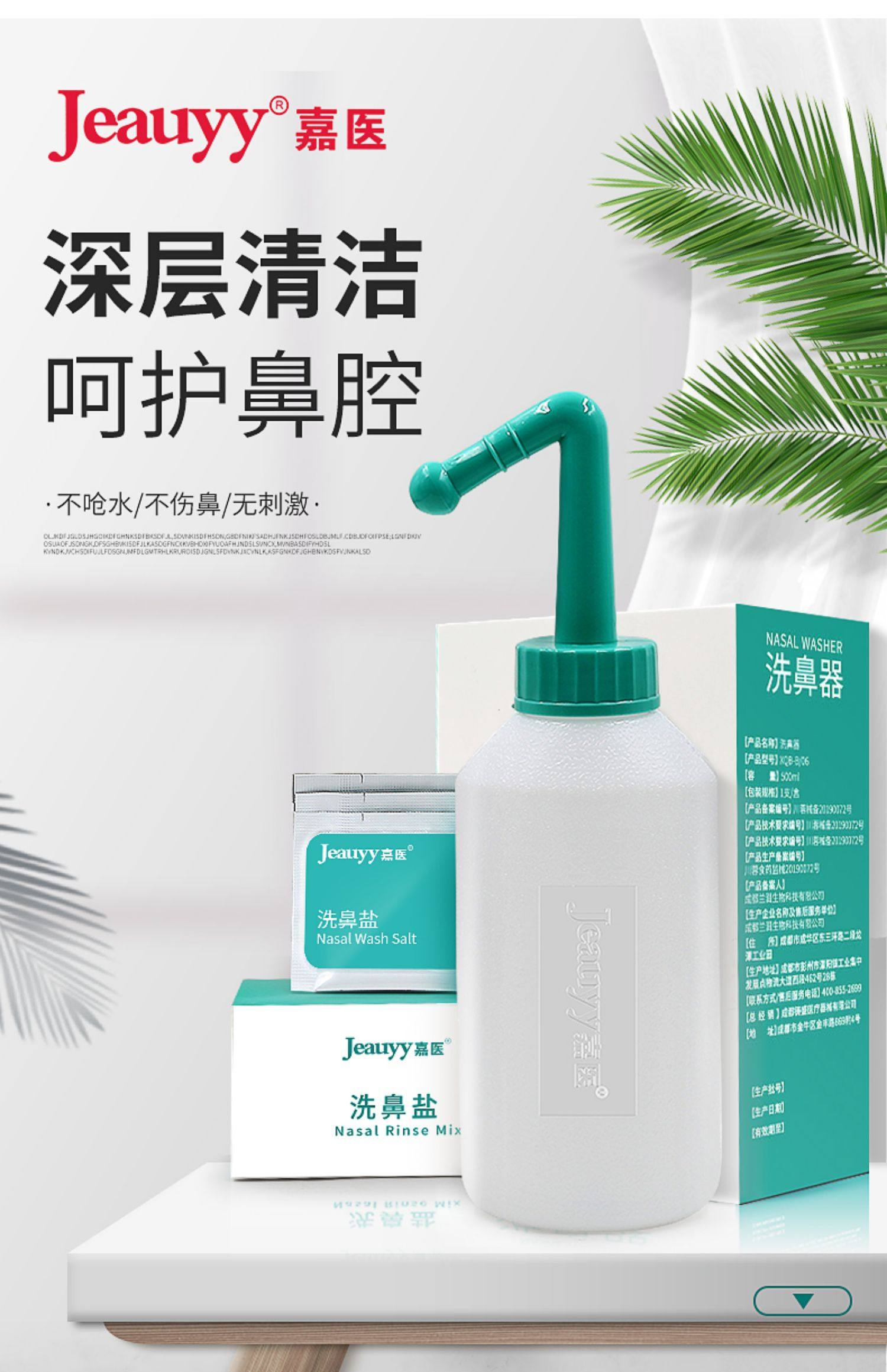 【成人儿童都可用!】嘉医医用洗鼻器,医用材质安全无毒!深度清洁鼻腔,精选海盐30袋独立包装有品质,500ml大容量瓶身,清洁一气呵成!双喷头配置,水流可控防呛鼻!保持鼻腔清洁,呼吸更健康!