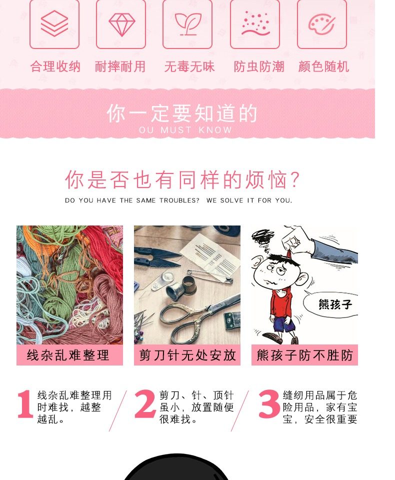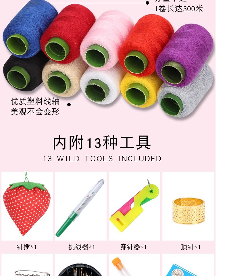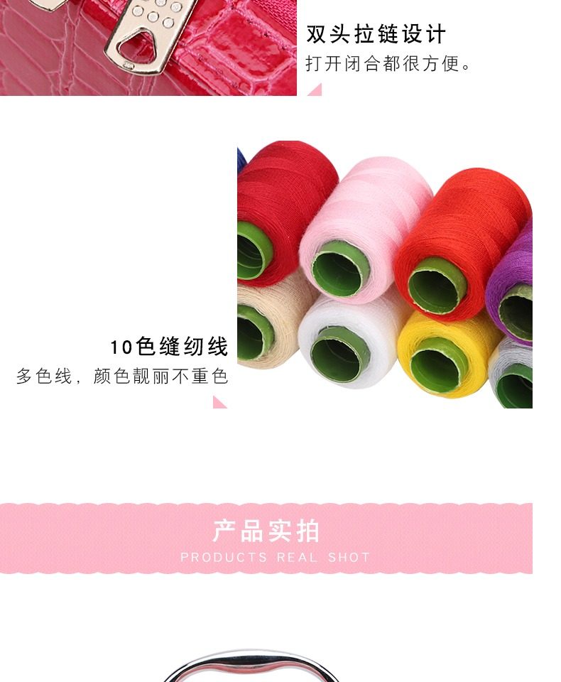 便携针线收纳盒,告别杂乱,一套搞定,配10色大线卷,内附13中工具,身材小,内容多,新颖收纳包,双头拉链设计,三色可选。