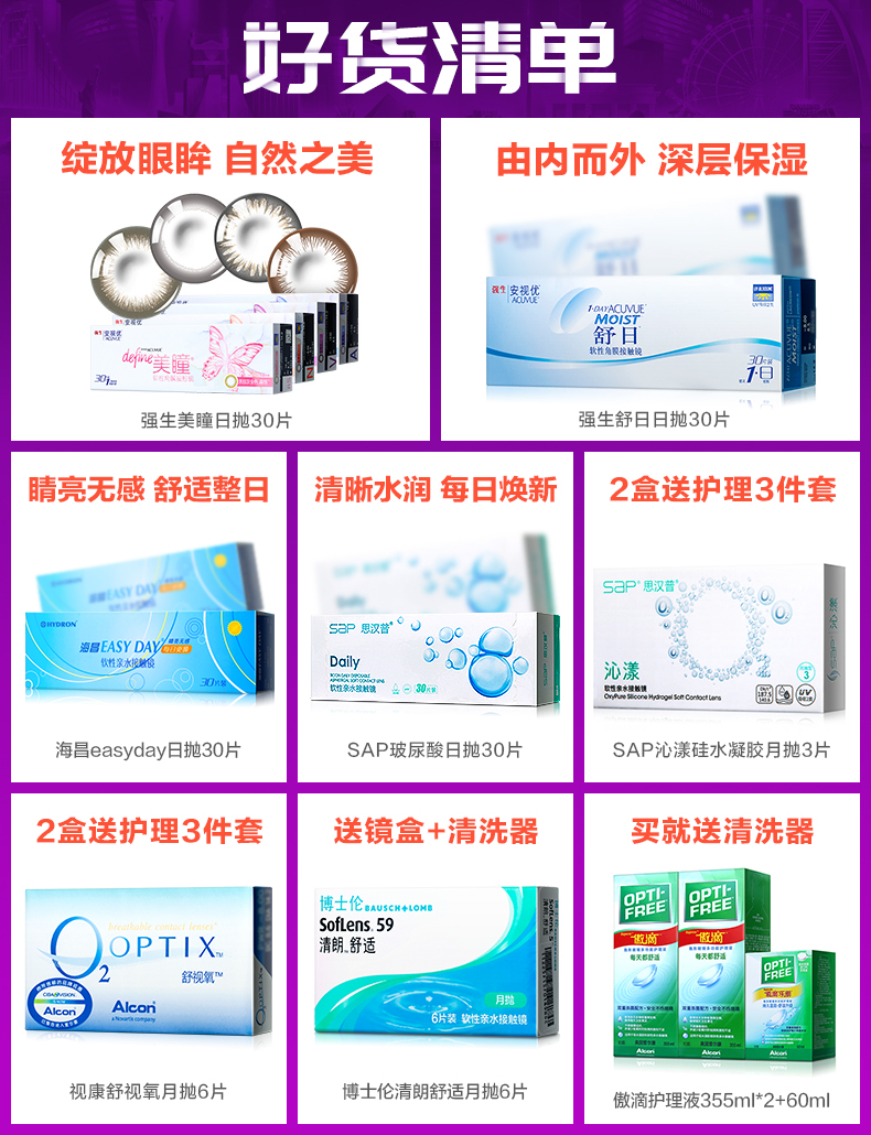 【下单即送精美镜盒+满2盒再减20】非球面设计清晰成像,添加玻尿酸保存液,恒久保湿,佩戴舒适,舒缓眼镜干涩,双眼灵动水润~【护眼无忧】【赠运险费】
