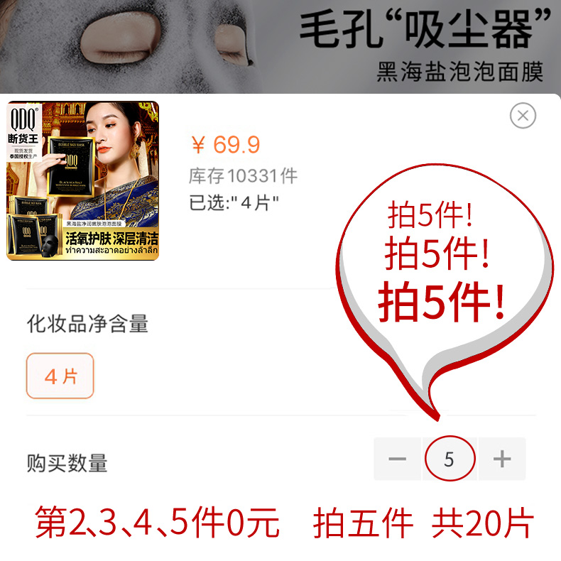 【拍5件,第二,三,四,五件0元】李佳琪推荐,黑海盐高净润泡泡SPA面膜,三重净化,舒缓肌肤,击退暗浊.就是海洋,源自深海,改善痘痘和粉刺,你的毛孔吸尘器,给肌肤注氧打气。