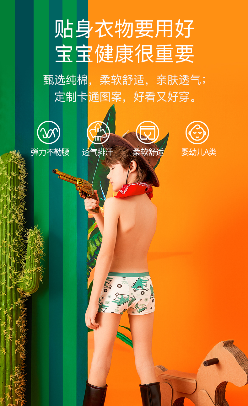 宝宝健康很重要,贴身衣物要选好!95%纯棉面料,婴幼儿A类面料,柔软舒适,透气排汗~温柔呵护宝宝私处卫生安全!还是可爱卡通图案,孩子更喜欢!超值4条只要19.9!宝妈速抢!